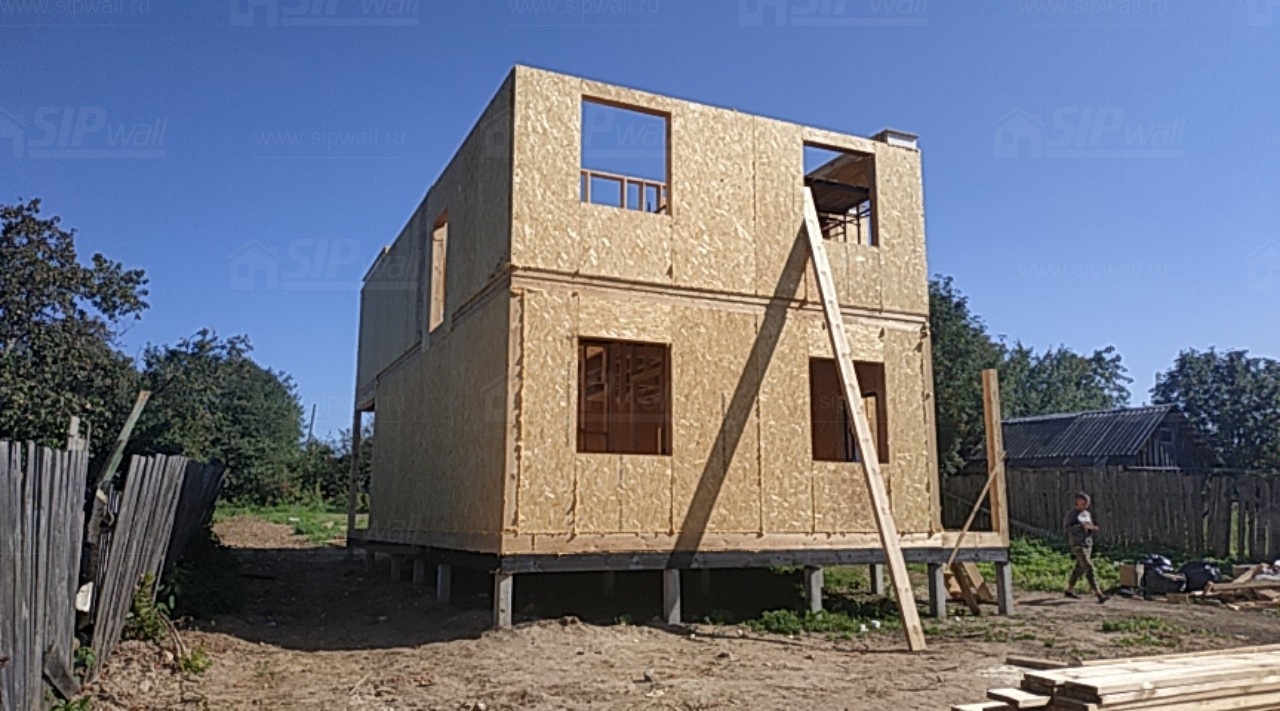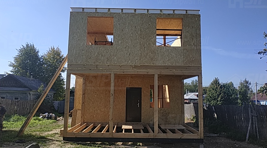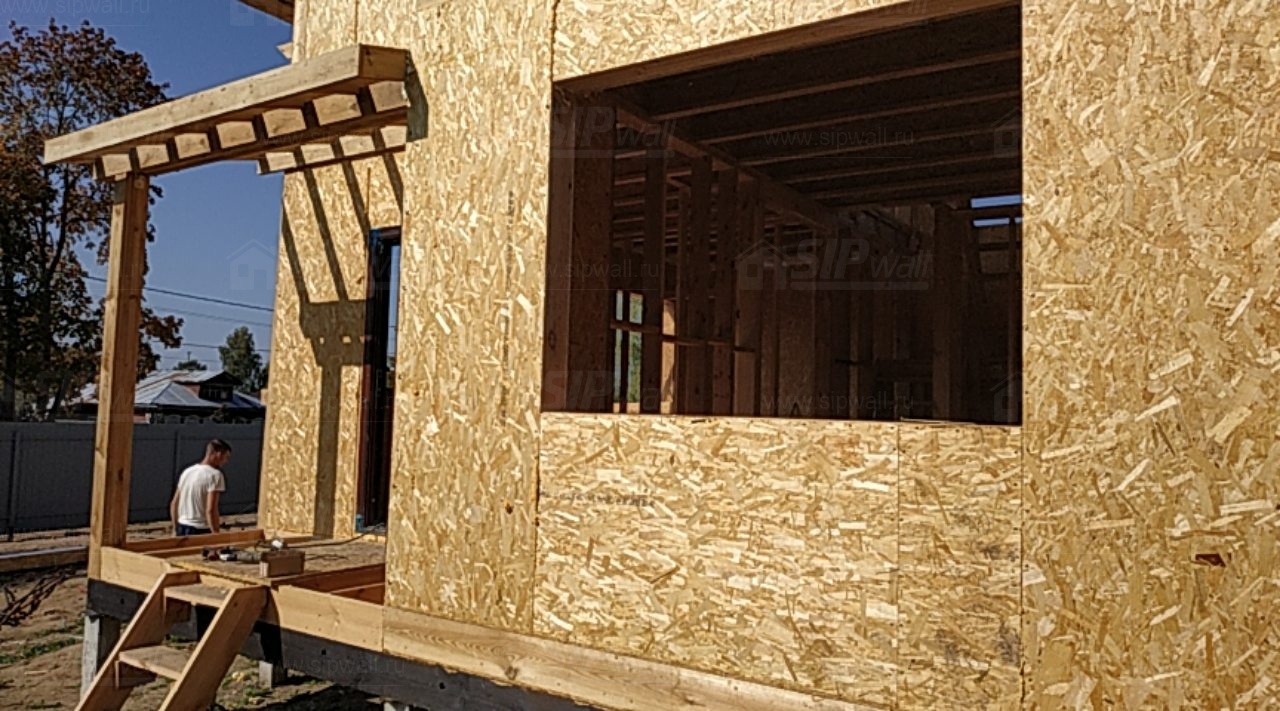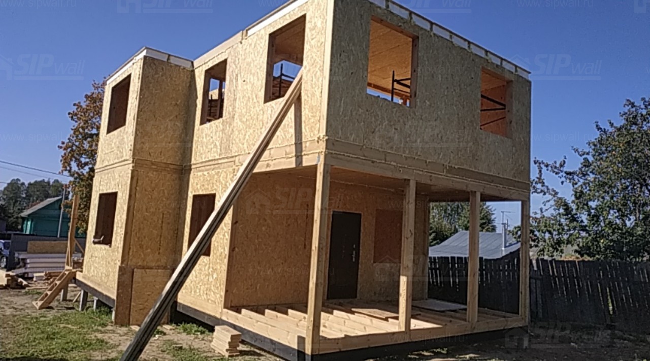 Домокомплект - изготовлен по проекту из СИП панелей произведенный по технологии SIPwall (ЭКОПАН) на собственном заводе расположенном в г. Шуя, Ивановской области. При изготовлении домокомплекта панельно каркасного дома используется только сухой строганный брус камерной сушки, обработанный огнебиозащитным составом.
