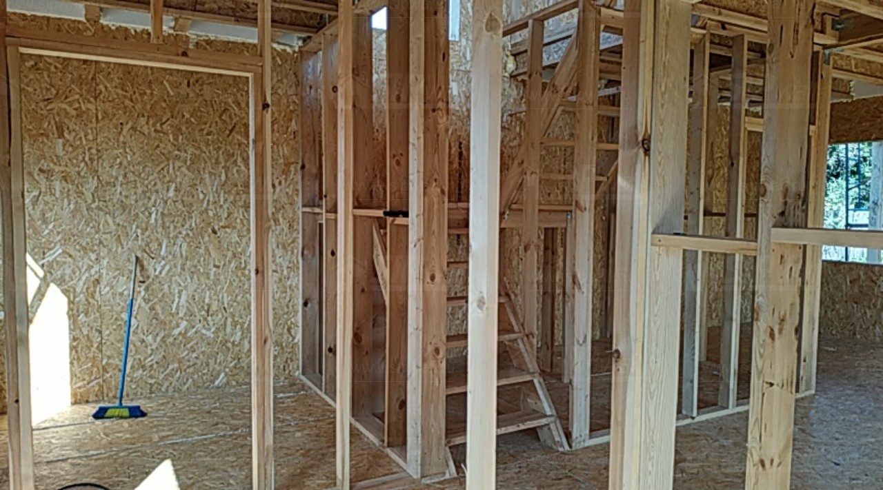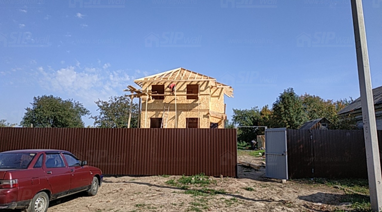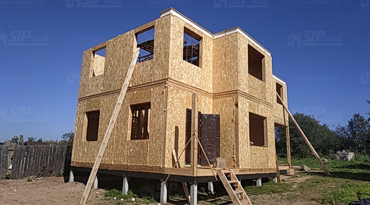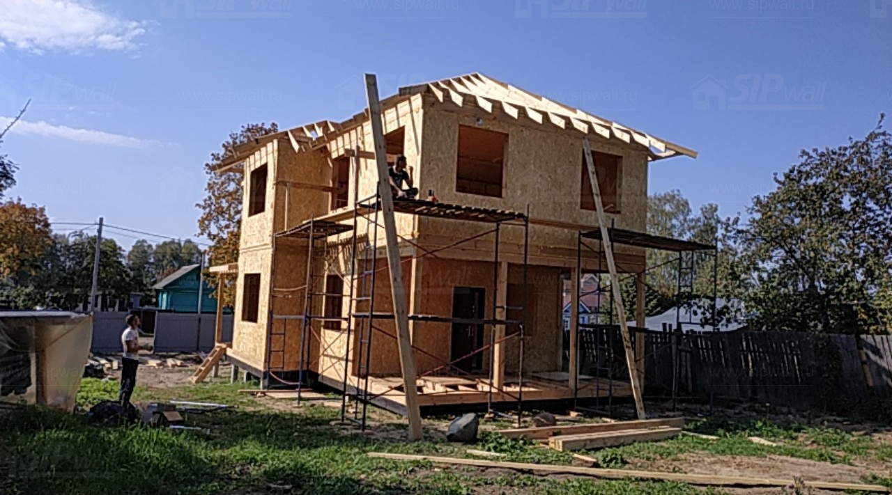 Домокомплект - изготовлен по проекту из СИП панелей произведенный по технологии SIPwall (ЭКОПАН) на собственном заводе расположенном в г. Шуя, Ивановской области. При изготовлении домокомплекта панельно каркасного дома используется только сухой строганный брус камерной сушки, обработанный огнебиозащитным составом.