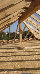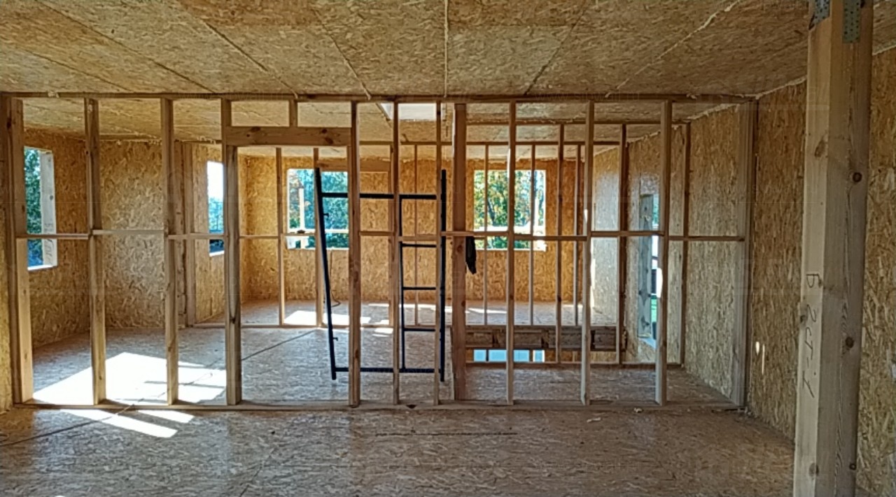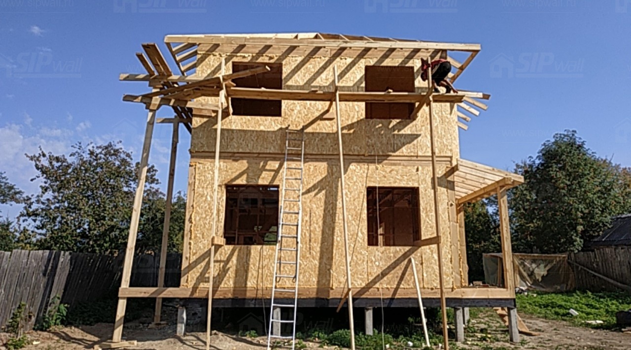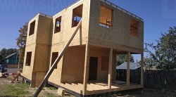 Комплектация домокомплекта: перекрытие на отметке +0.000 - СИП - 224У мм., несущие стены дома выполнены из СИП панелей 174 мм., внутренние несущие стены и внутренние не несущие перегородки выполнены по каркасной технологии. Чердачное перекрытие - СИП - 224У мм, Кровля - стропильная система.