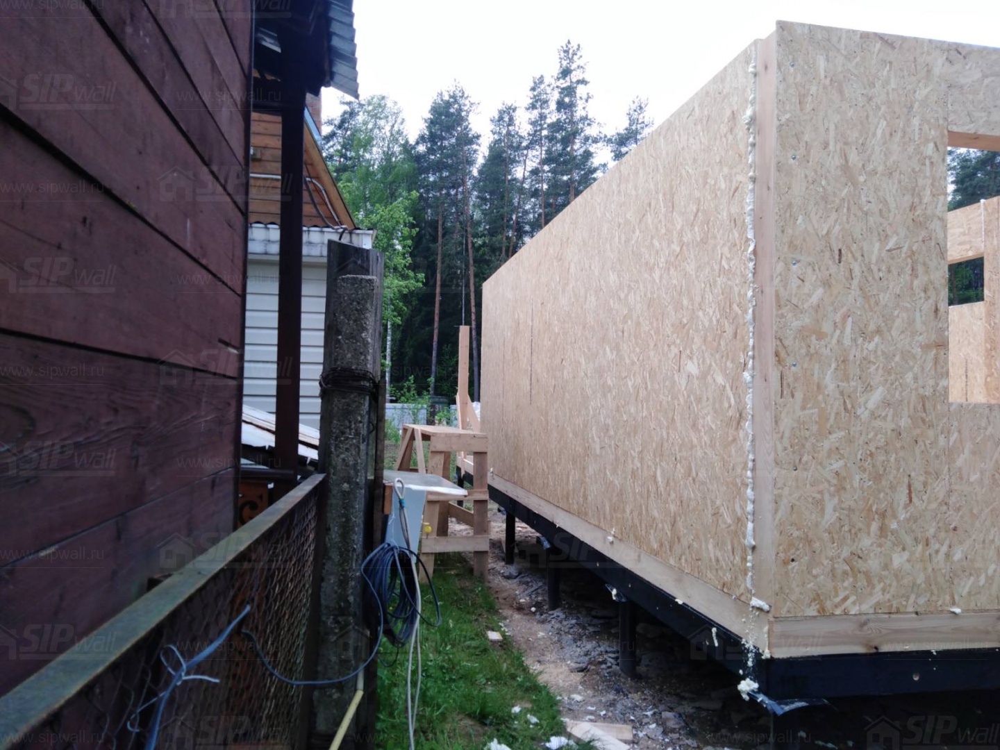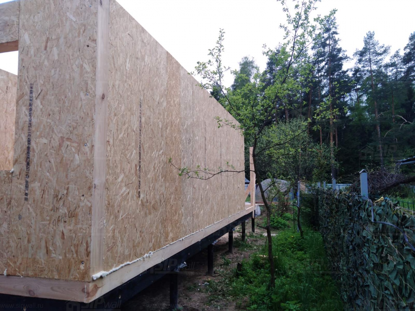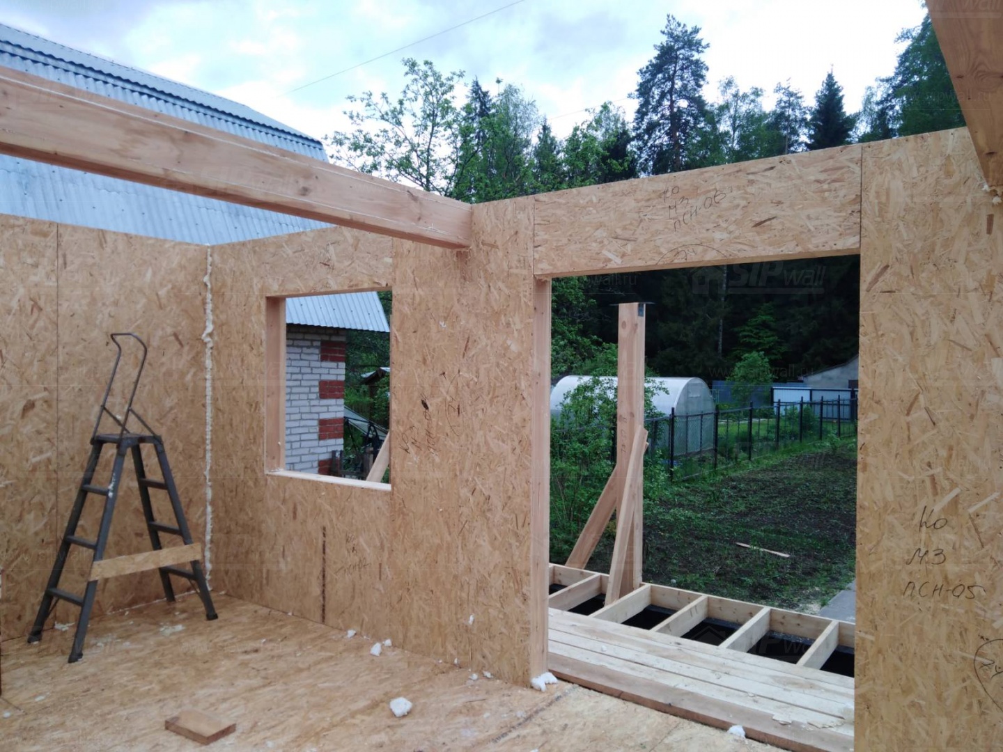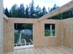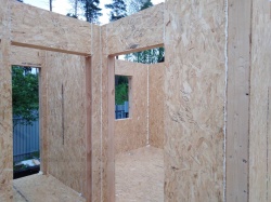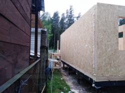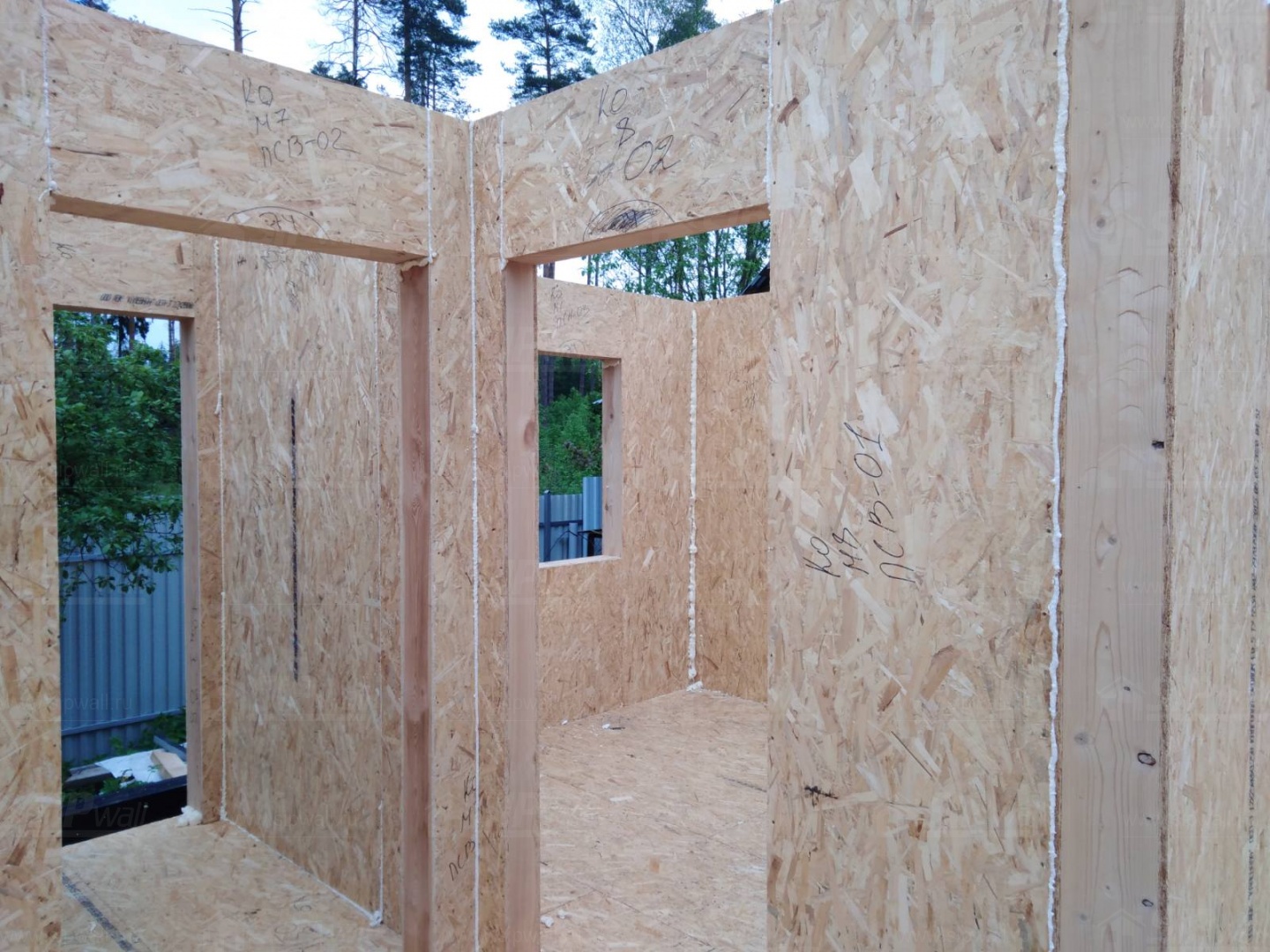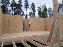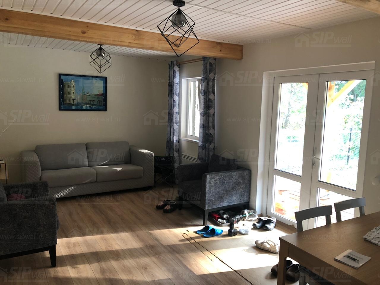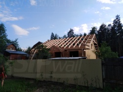Все СИП панели SIPwall толщиной 224/174/124 мм (плиты OSB-3 толщиной 12 мм "Калевала" Россия и фасадный пенополистирол ППС-14 толщиной 200/150/100 мм производства, Россия) нарезаны и обрусованы сухим строганным брусом камерной сушки в соответствии с проектной документацией.