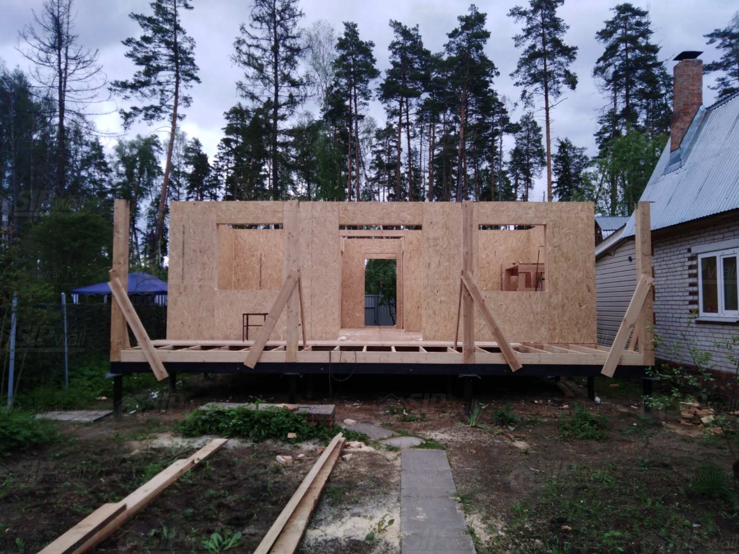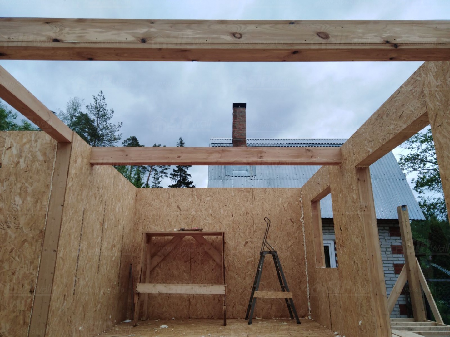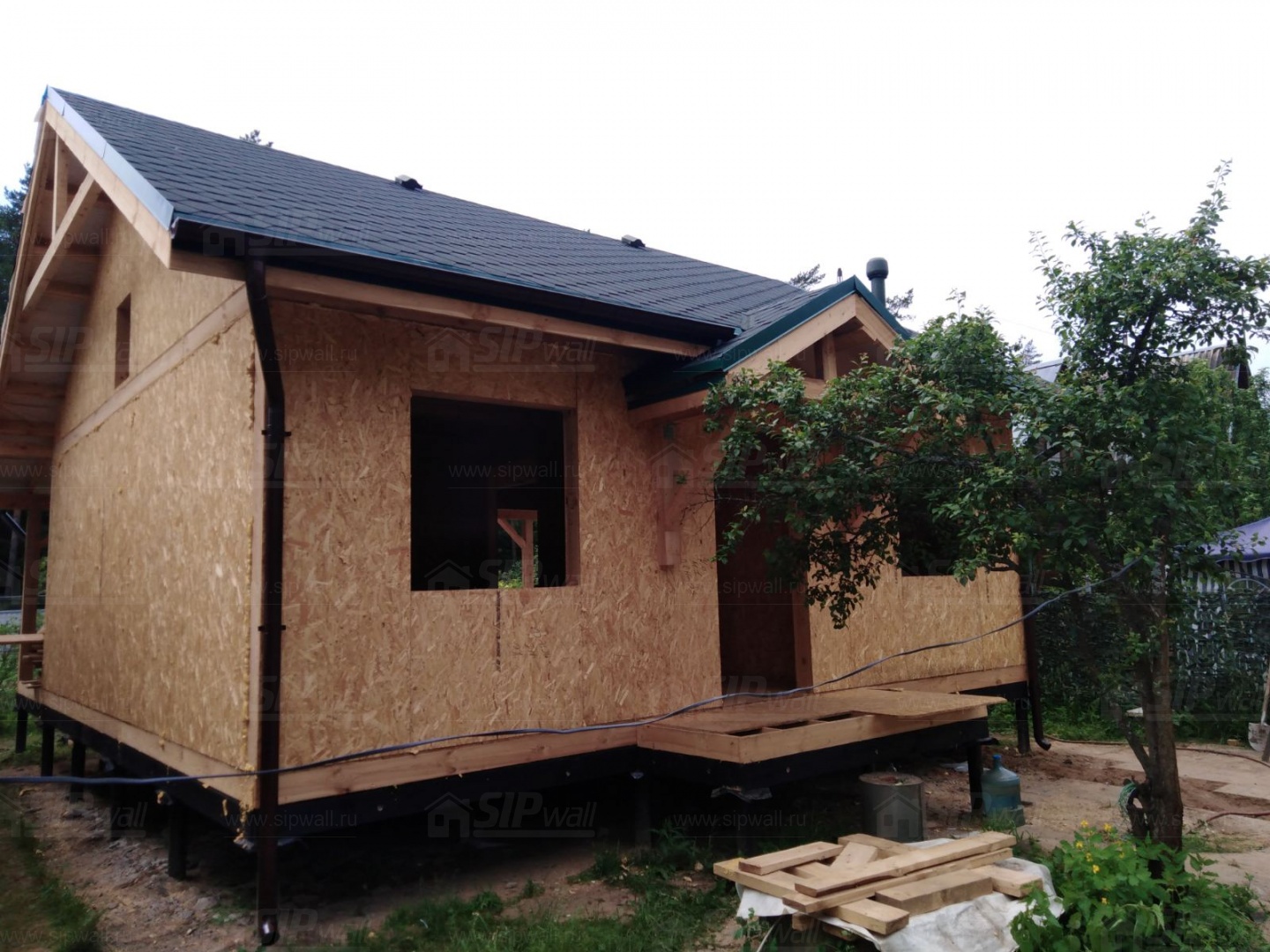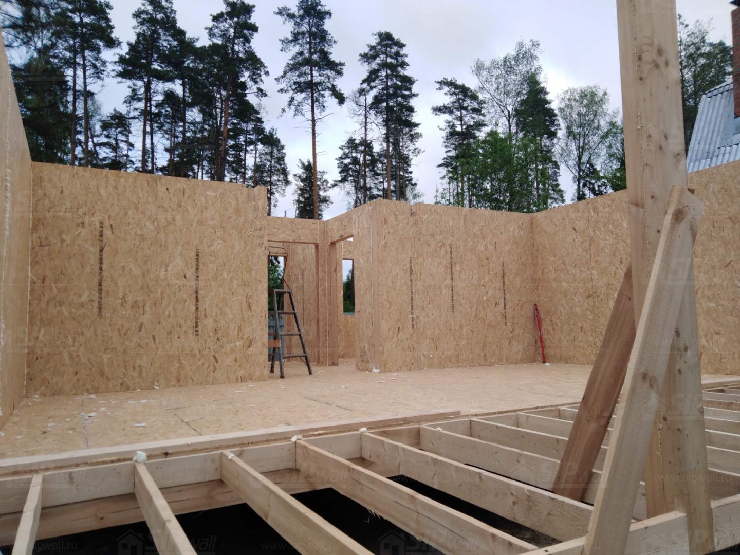 Все СИП панели SIPwall толщиной 224/174/124 мм (плиты OSB-3 толщиной 12 мм "Калевала" Россия и фасадный пенополистирол ППС-14 толщиной 200/150/100 мм производства, Россия) нарезаны и обрусованы сухим строганным брусом камерной сушки в соответствии с проектной документацией.