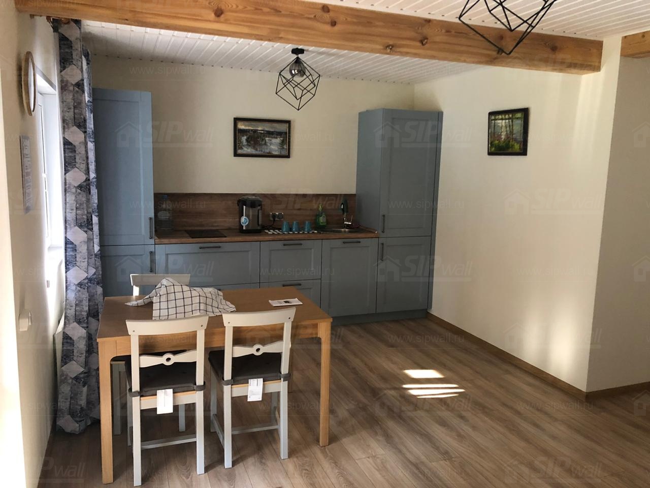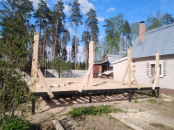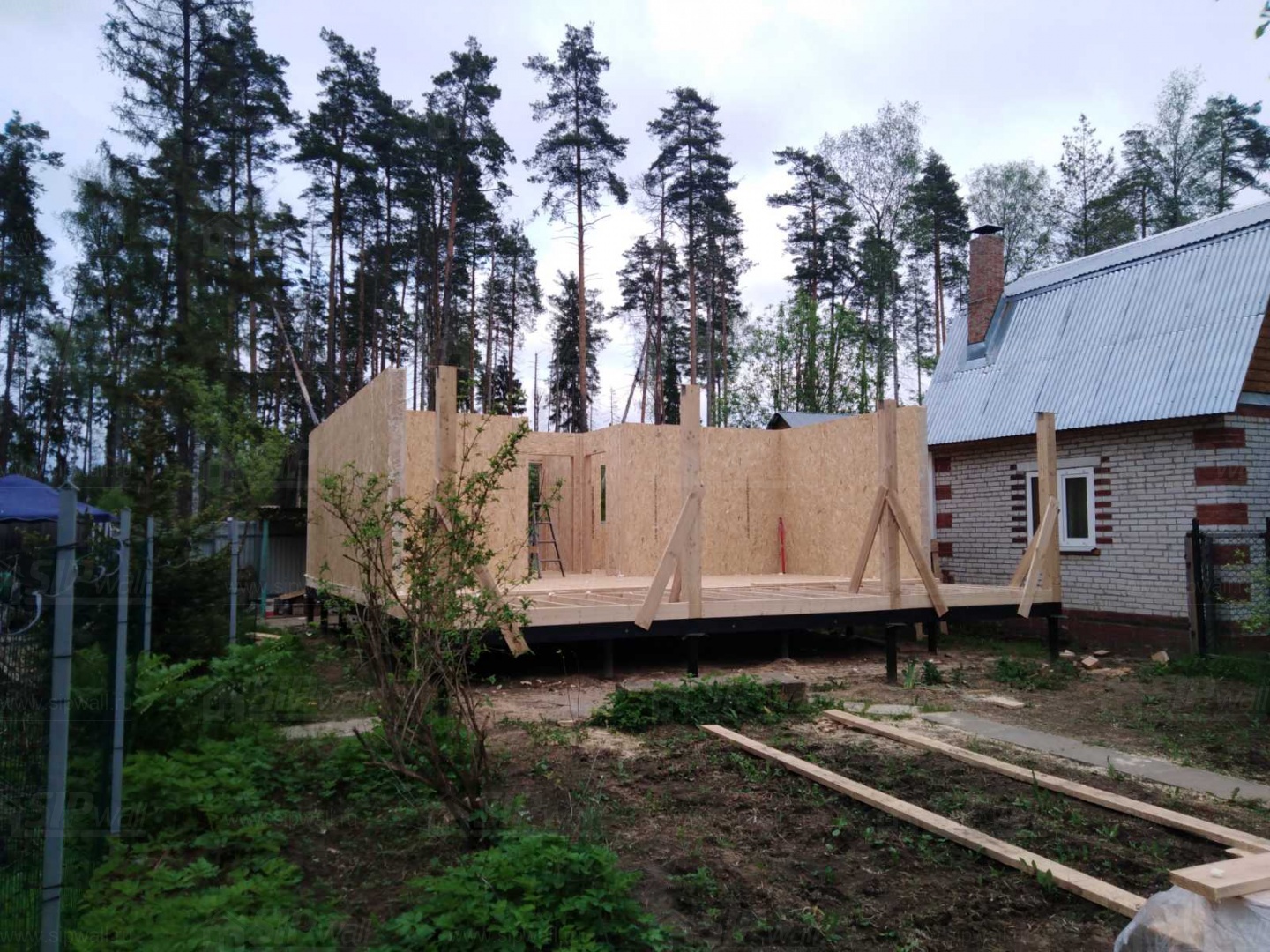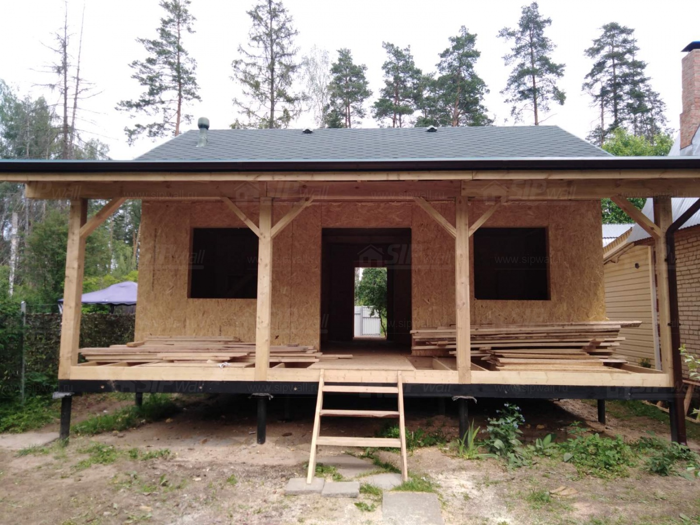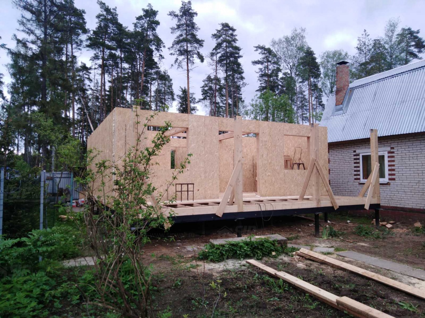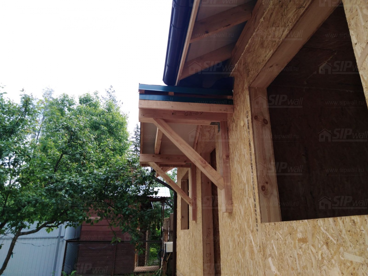 Все СИП панели SIPwall толщиной 224/174/124 мм (плиты OSB-3 толщиной 12 мм "Калевала" Россия и фасадный пенополистирол ППС-14 толщиной 200/150/100 мм производства, Россия) нарезаны и обрусованы сухим строганным брусом камерной сушки в соответствии с проектной документацией.