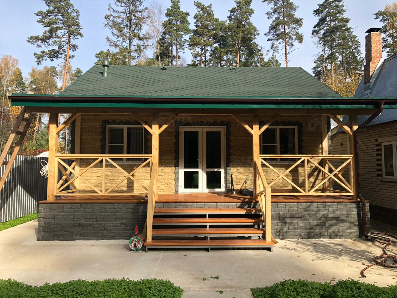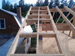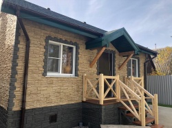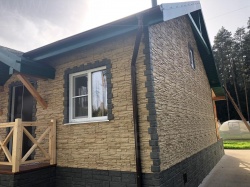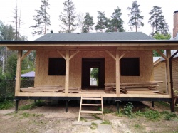 Домокомплект - изготовлен по проекту из СИП панелей произведенный по технологии SIPwall (ЭКОПАН) на собственном заводе расположенном в г. Шуя, Ивановской области. При изготовлении домокомплекта панельно каркасного дома используется только сухой строганный брус камерной сушки, обработанный огнебиозащитным составом.