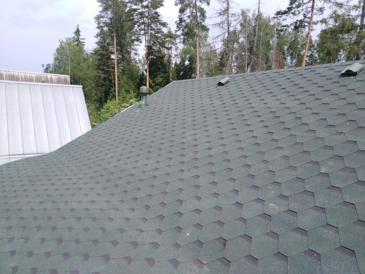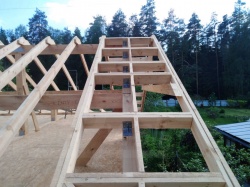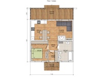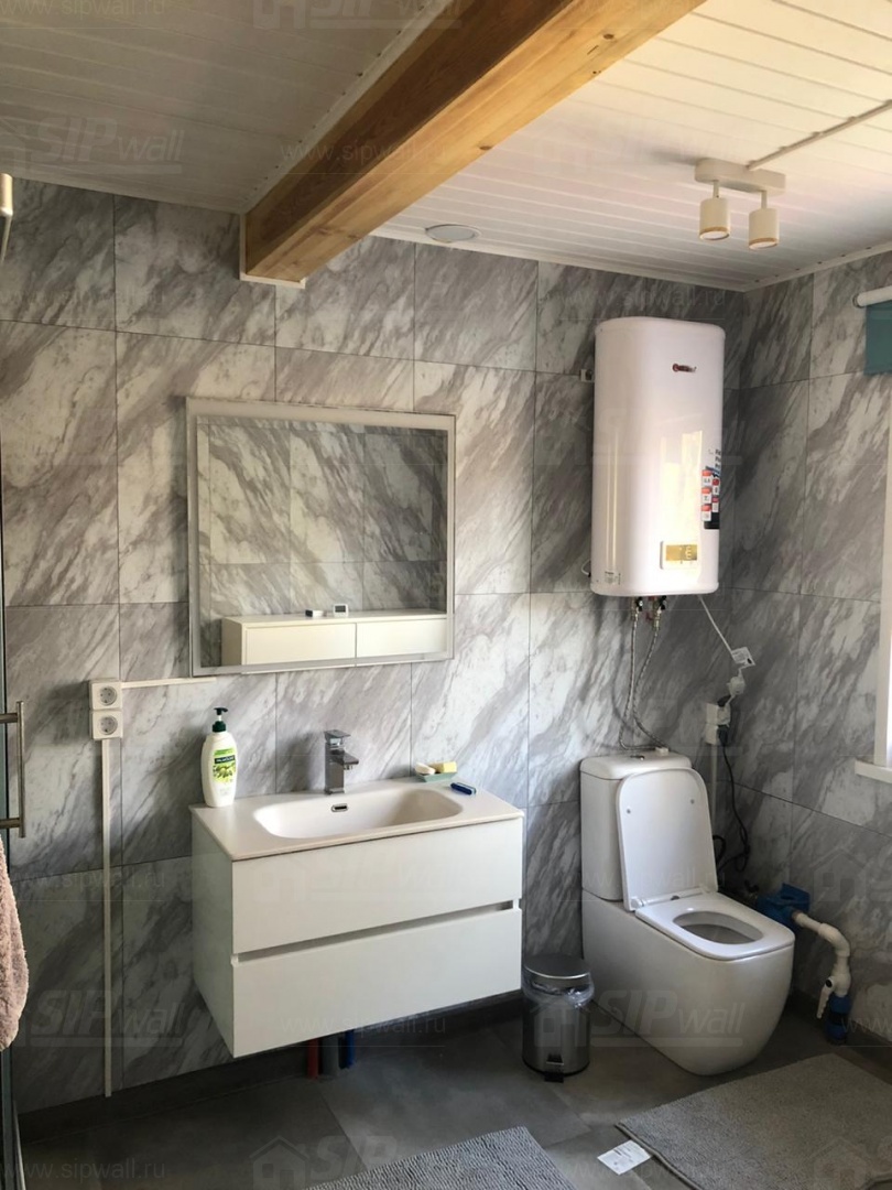 Комплектация домокомплекта: перекрытие на отметке +0.000 - СИП - 174У мм., несущие стены дома выполнены из СИП панелей 174 мм, внутренние несущие стены выполнены из СИП панелей 174 мм и не несущие стены выполнены из СИП панелей 124 мм. Кровля - СИП 174У.