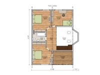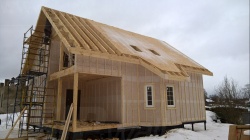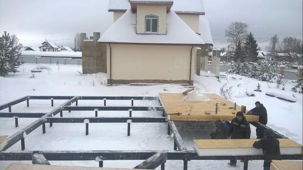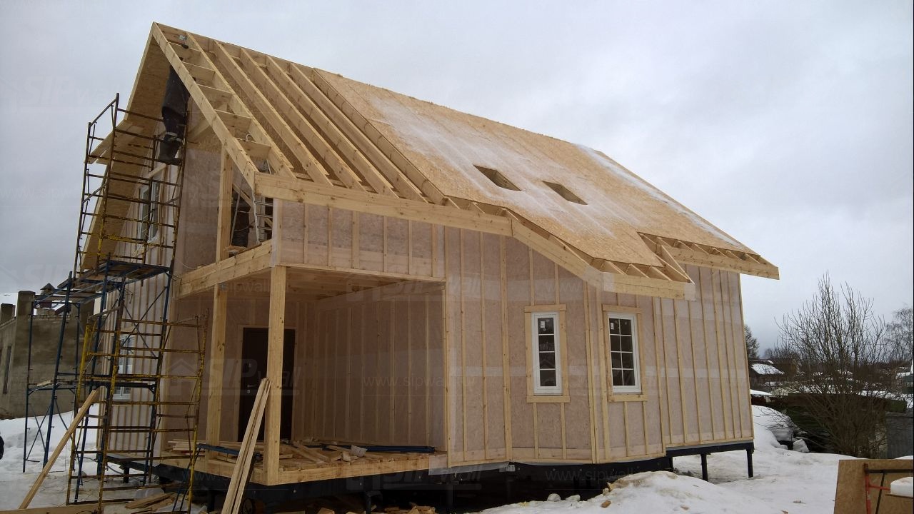 Комплектация домокомплекта: нулевое перекрытие -выполнены из СИП панелей 224У мм, несущие стены дома выполнены из СИП панелей 174 мм., внутренние несущие стены выполнены из СИП панелей 174 мм. и внутренние не несущие перегородки выполнены из СИП панелей 124 мм. Перекрытие межэтажное - -выполнены из СИП панелей 224У мм. Кровля - из СИП панелей - 224у мм производства компании СИПВОЛЛ.