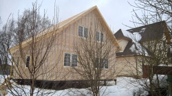 Домокомплект - изготовлен по проекту ЯСТРЕБ из СИП панелей произведенный по технологии SIPwall (ЭКОПАН) на собственном заводе расположенном в г. Шуя, Ивановской области. При изготовлении домокомплекта панельно каркасного дома используется только сухой строганный брус камерной сушки, обработанный огнебиозащитным составом.