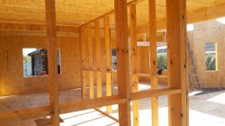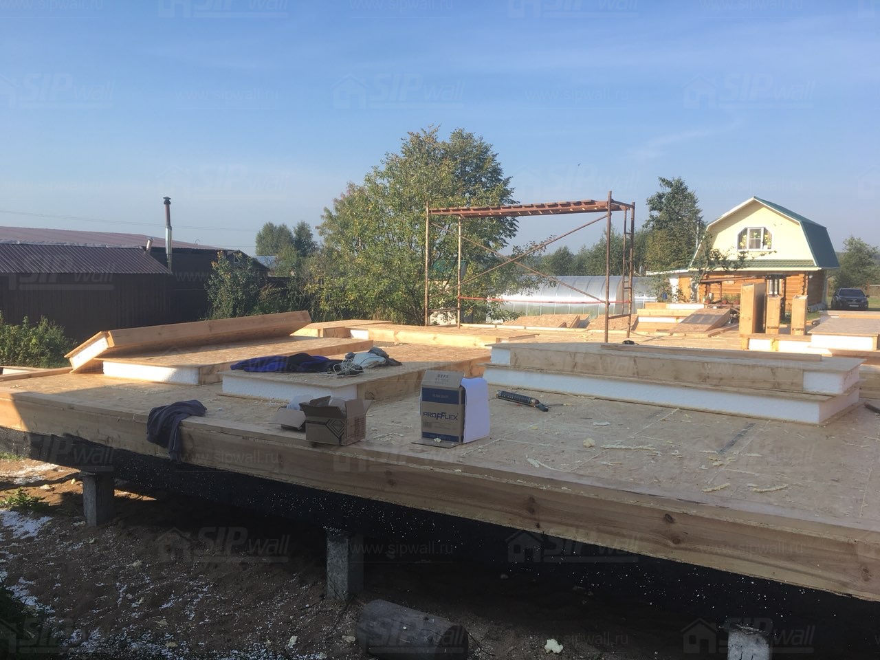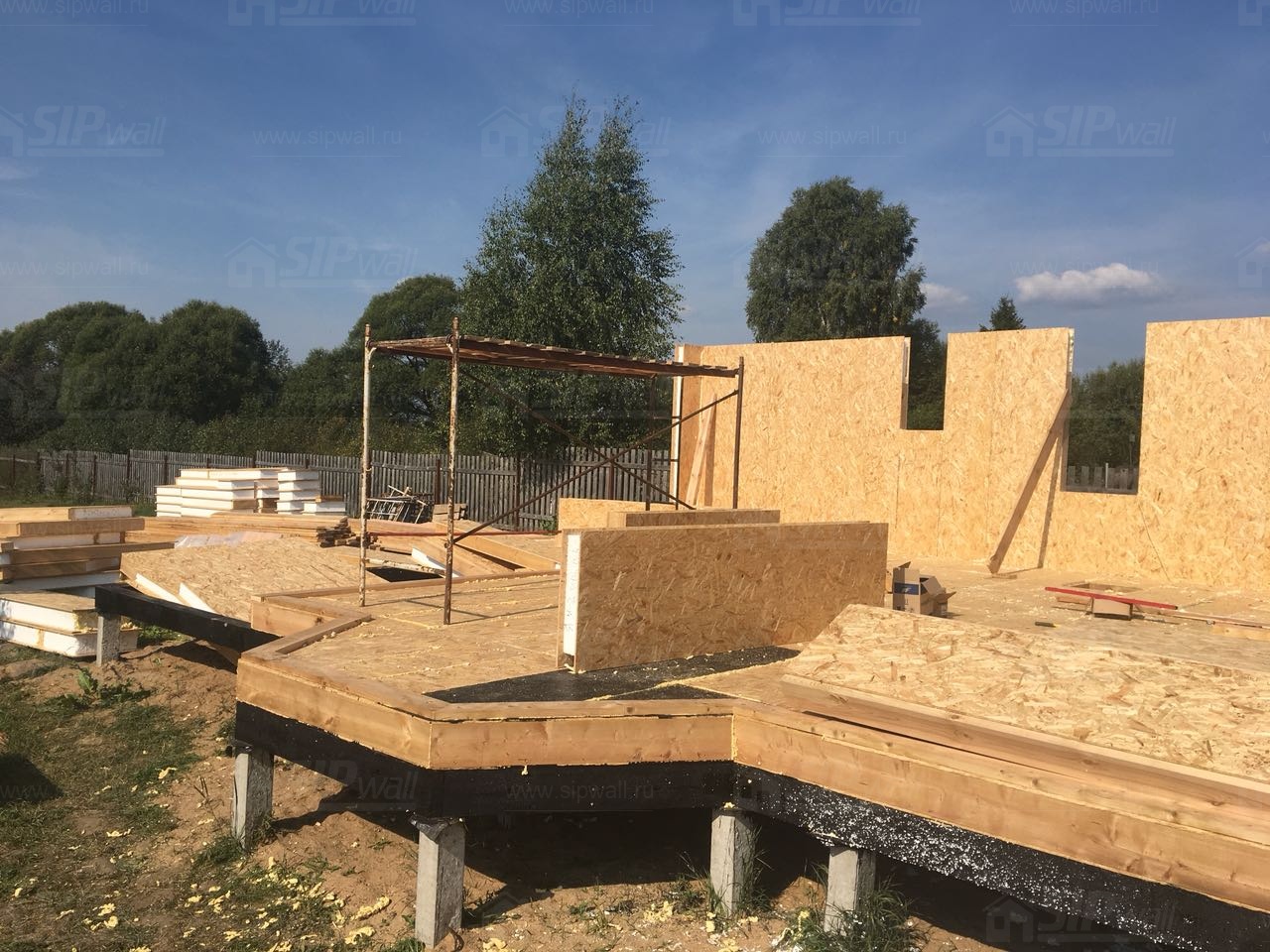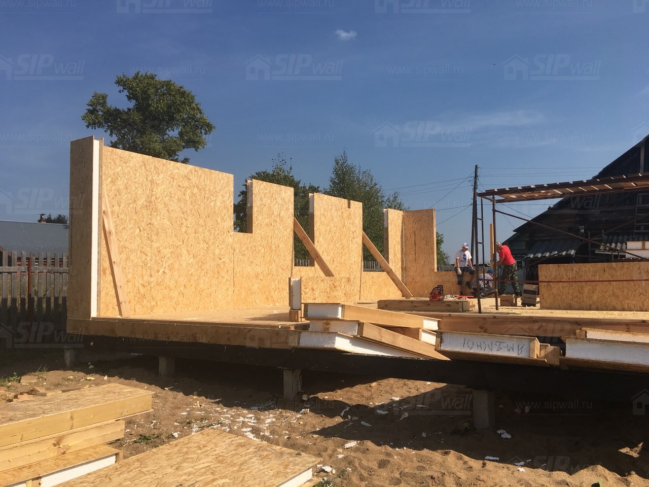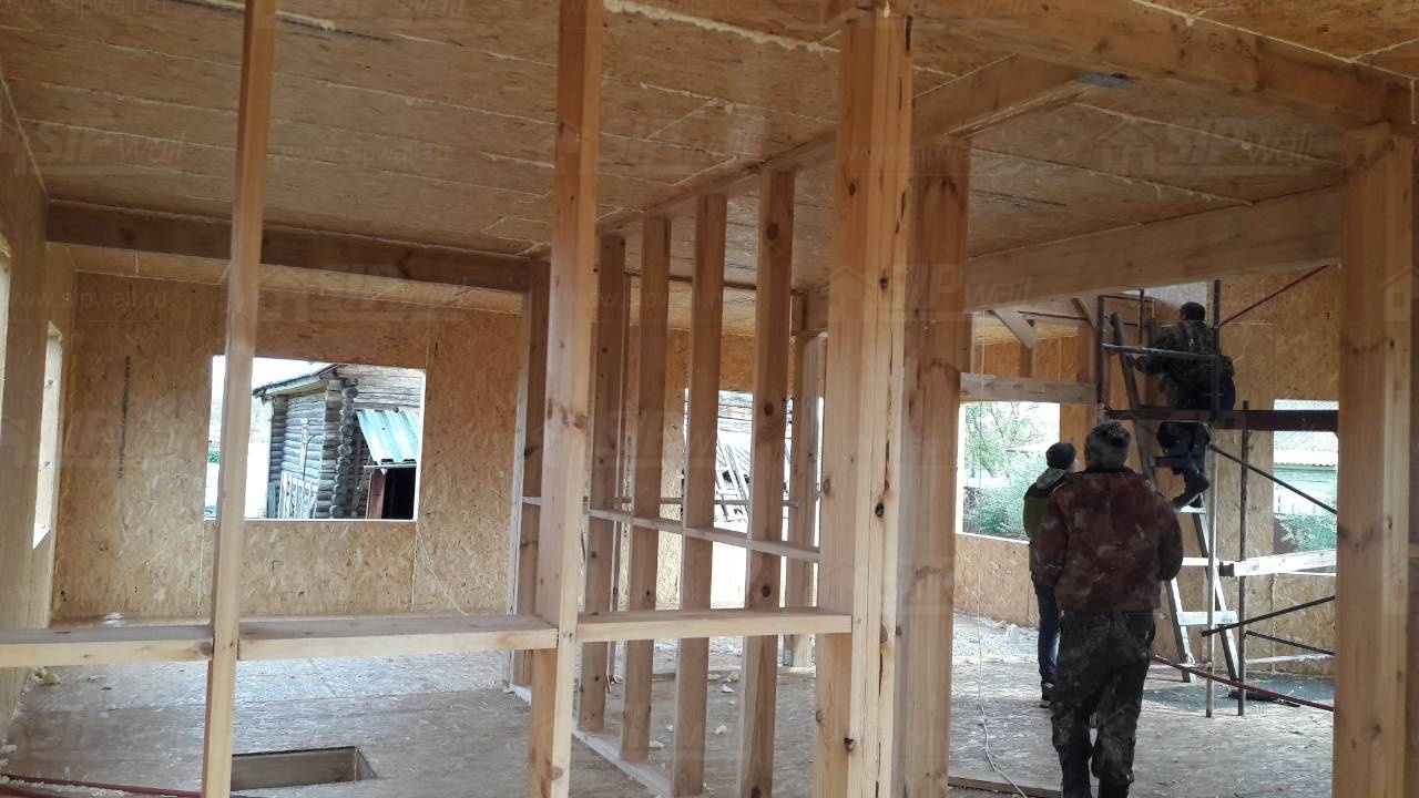 Все СИП панели SIPwall толщиной 224/174/124 мм (плиты OSB-3 толщиной 12 мм "Калевала" Россия и фасадный пенополистирол ПСБ-С 25 по ГОСТ 15588-14 толщиной 200/150/100 мм производства завода "PolarPlast", Россия) нарезаны и обрусованы сухим строганным брусом камерной сушки в соответствии с проектной документацией.