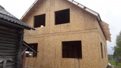 Комплектация домокомплекта: перекрытие на отметке +0.000 - СИП - 224У мм., несущие стены дома выполнены из СИП панелей 174 мм., внутренние несущие стены и внутренние не несущие перегородки выполнены по каркасной технологии. Перекрытие межэтажное - выполнено из СИП панелей - 224У мм. Кровля - выполнена из СИП панелей 224У мм.