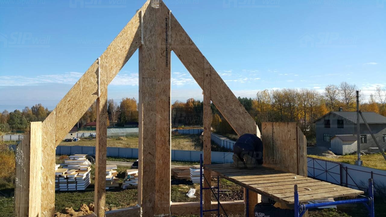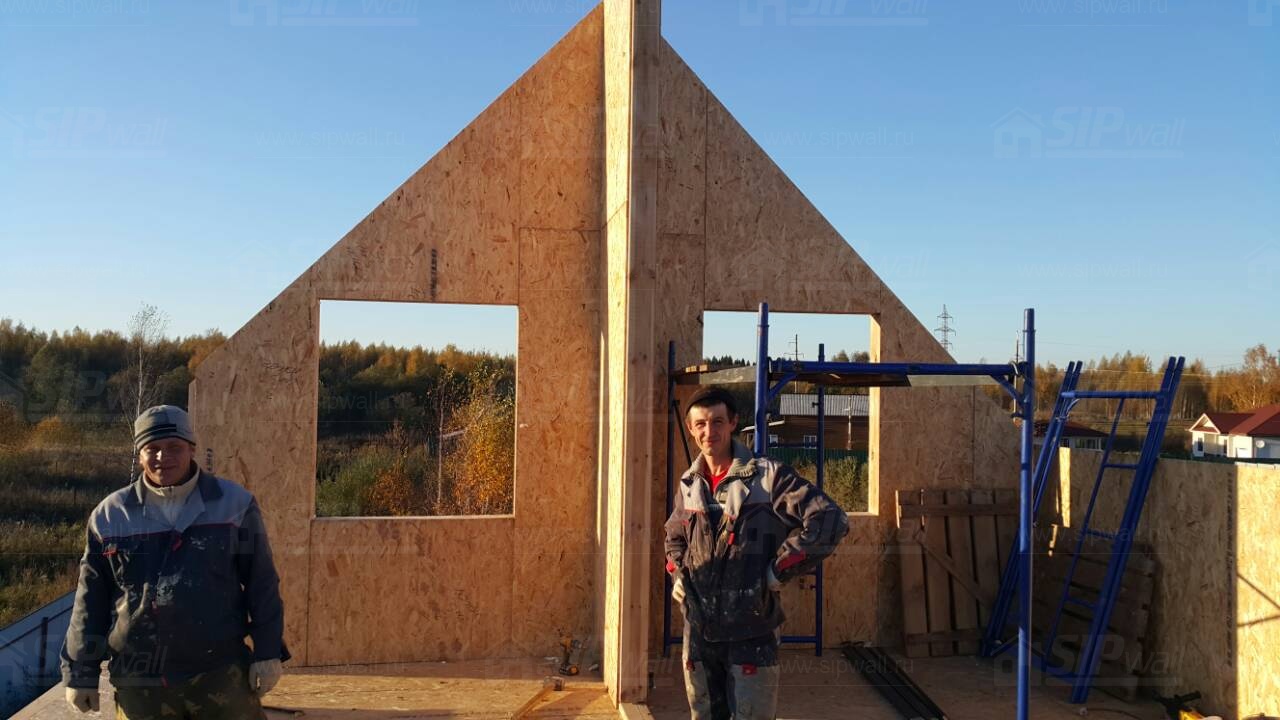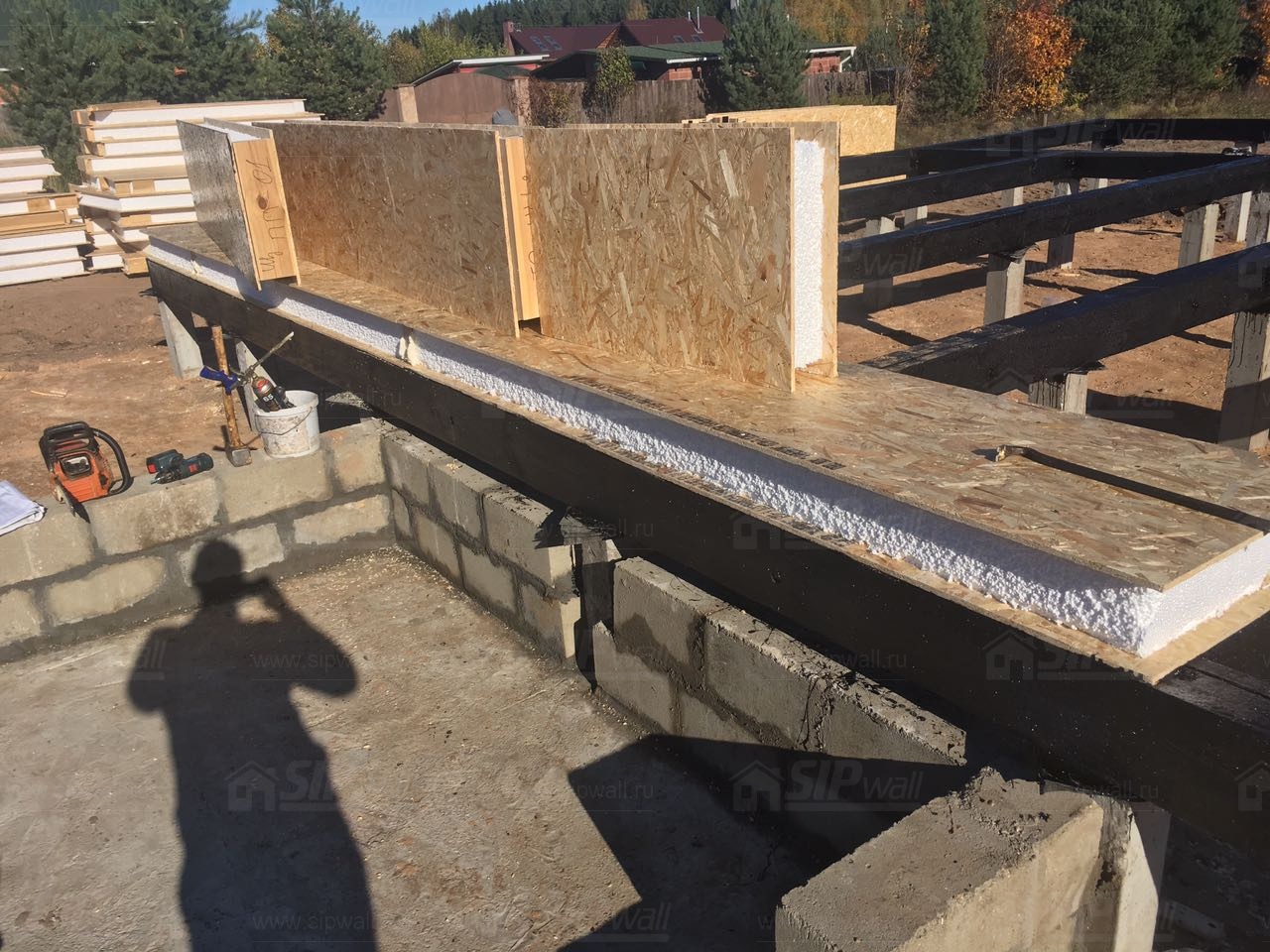 Все СИП панели SIPwall толщиной 224/174/124 мм (плиты OSB-3 толщиной 12 мм "Калевала" Россия и фасадный пенополистирол ПСБ-С 25 по ГОСТ 15588-14 толщиной 200/150/100 мм производства завода "PolarPlast", Россия) нарезаны и обрусованы сухим строганным брусом камерной сушки в соответствии с проектной документацией.