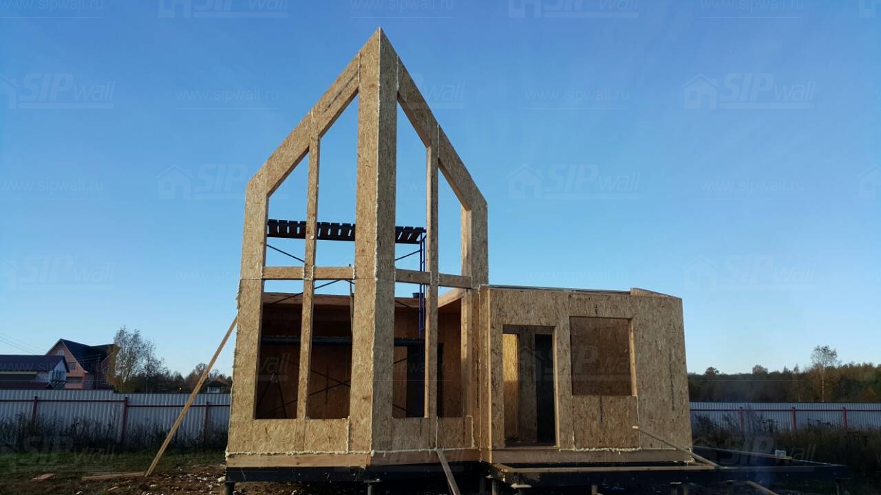 Комплектация домокомплекта: перекрытие на отметке +0.000 - СИП - 224У мм., несущие стены дома выполнены из СИП панелей 174 мм., внутренние несущие стены выполнены из СИП панелей 174 мм., внутренние не несущие перегородки выполнены выполнены из СИП панелей 124 мм.. Перекрытие межэтажное - выполнено из выполнены из СИП панелей 174 мм.. Кровля - выполнена из СИП панелей 174У мм.