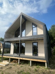Проект представляет собой просторный и функциональный двухэтажный дом общей площадью 149,29 м², выполненный в популярном стиле Barn house — сочетание минимализма, лаконичной формы и комфортной планировки для загородной жизни.