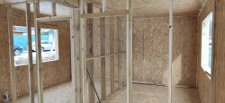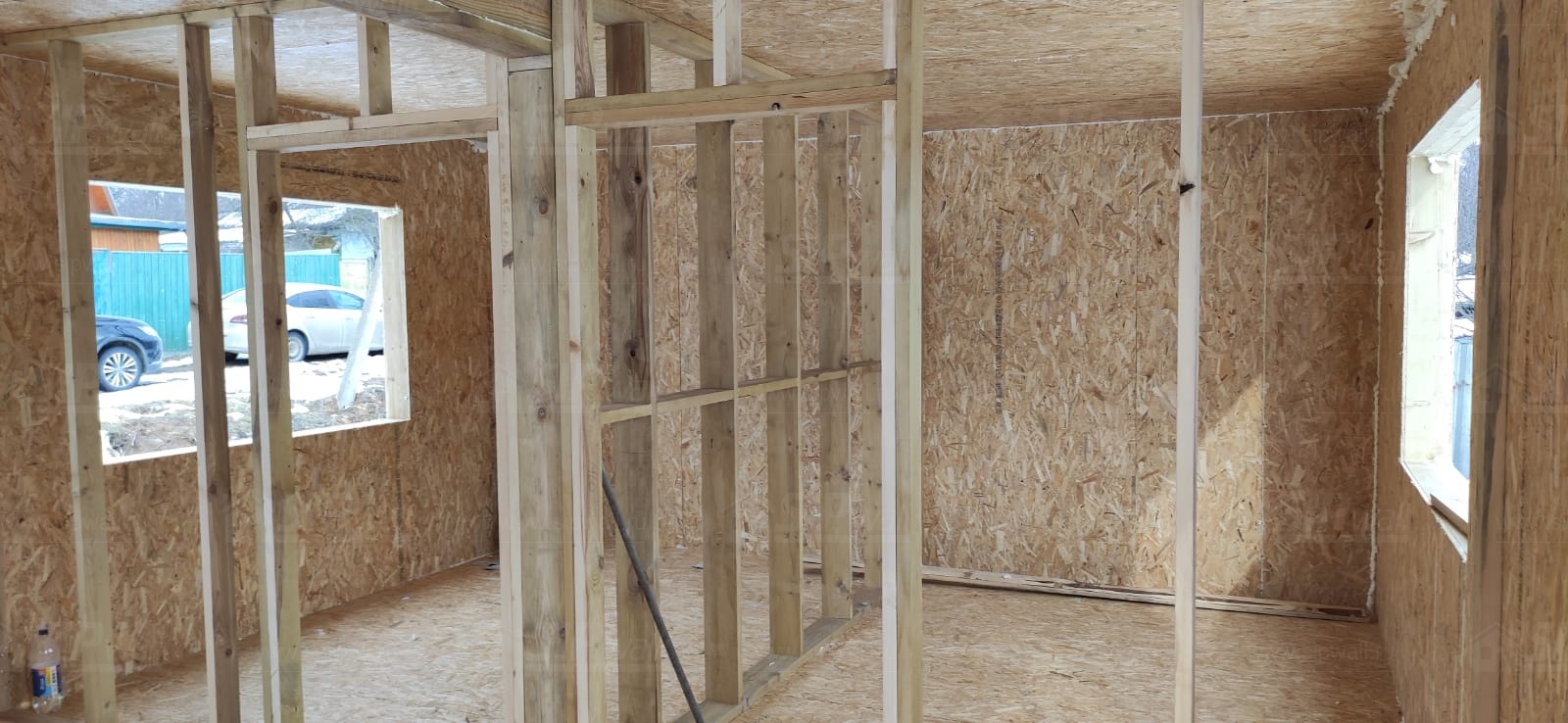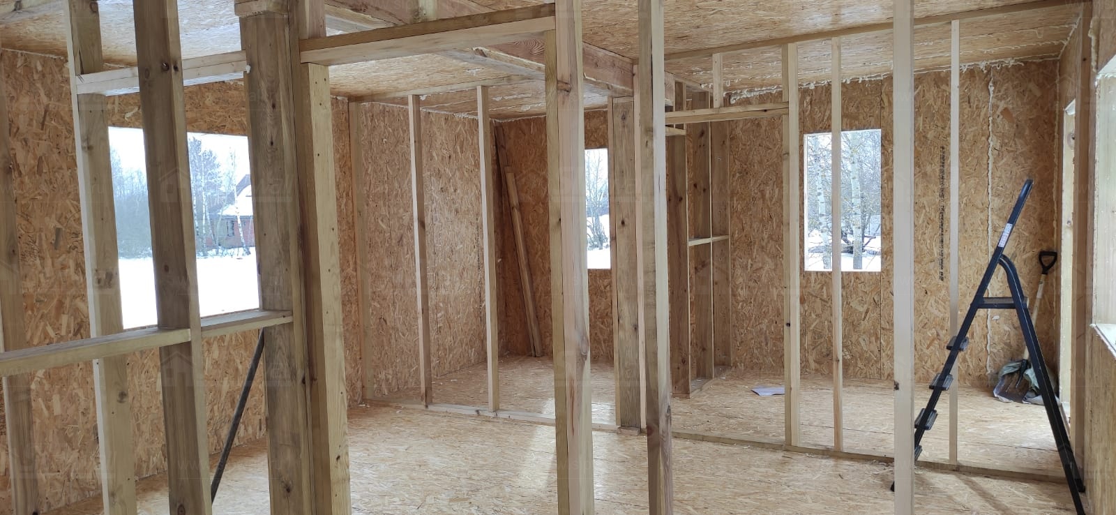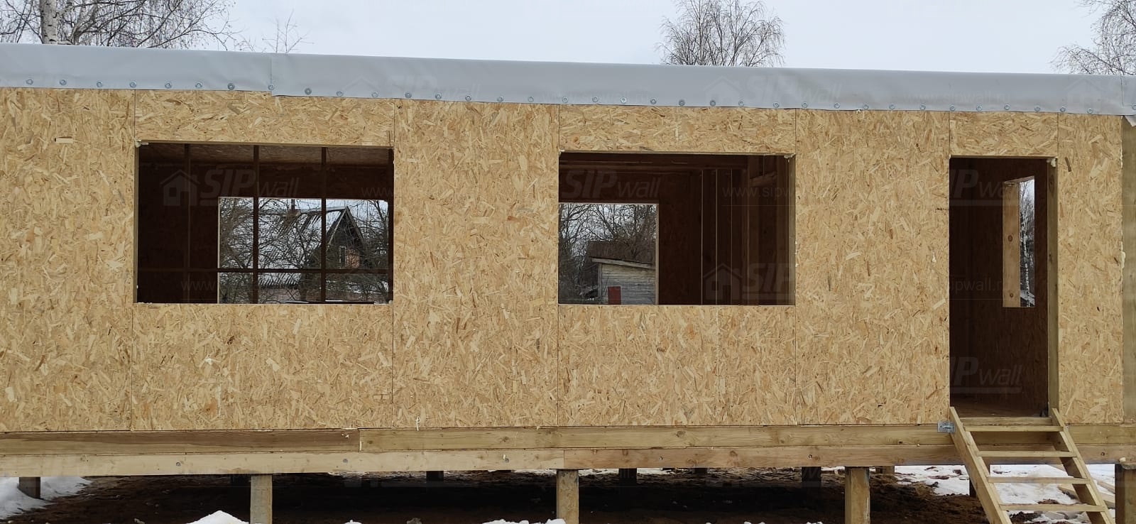 Все СИП панели SIPwall толщиной 224/174/124 мм (плиты OSB-3 толщиной 12 мм "Калевала" Россия и фасадный пенополистирол ППС-14 толщиной 200/150/100 мм производства, Россия) нарезаны и обрусованы сухим строганным брусом камерной сушки в соответствии с проектной документацией.