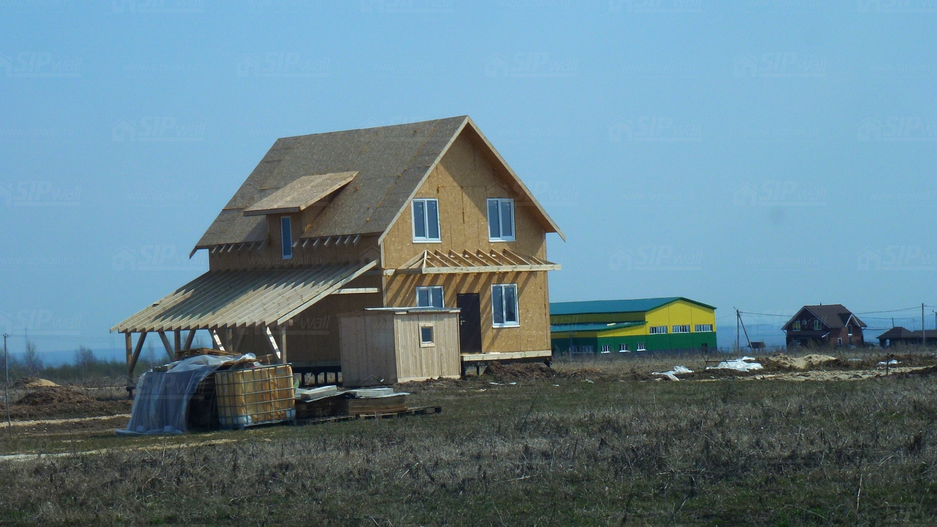 Все СИП панели SIPwall толщиной 224/174/124 мм (плиты OSB-3 толщиной 12 мм "Калевала" Россия и фасадный пенополистирол ПСБ-С 25 по ГОСТ 15588-14 толщиной 200/150/100 мм производства завода "PolarPlast", Россия) нарезаны и обрусованы сухим строганным брусом в соответствии с проектной документацией.