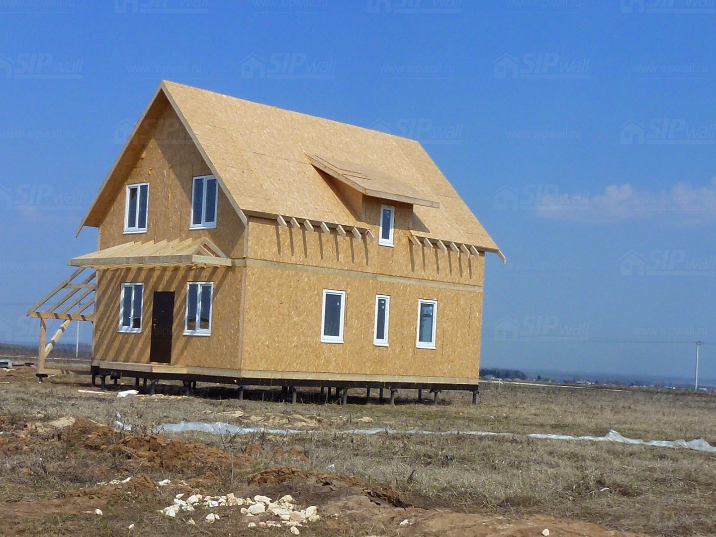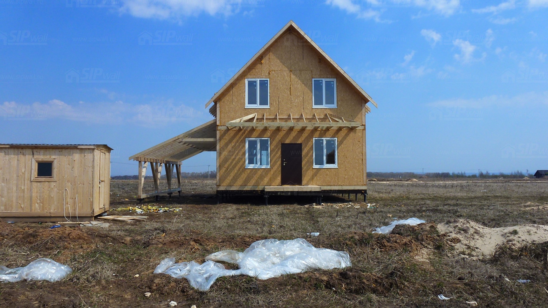 Комплектация домокомплекта: нулевое перекрытие - выполнены из СИП панелей 174У мм, несущие стены дома выполнены из СИП панелей 174 мм., внутренние несущие и внутренние не несущие перегородки выполнены по каркасной технологии. Перекрытие межэтажное - выполнены по лагам + ОСБ 22 мм. Кровля -выполнены из Санелей 174У, производства компании СИПВОЛЛ.