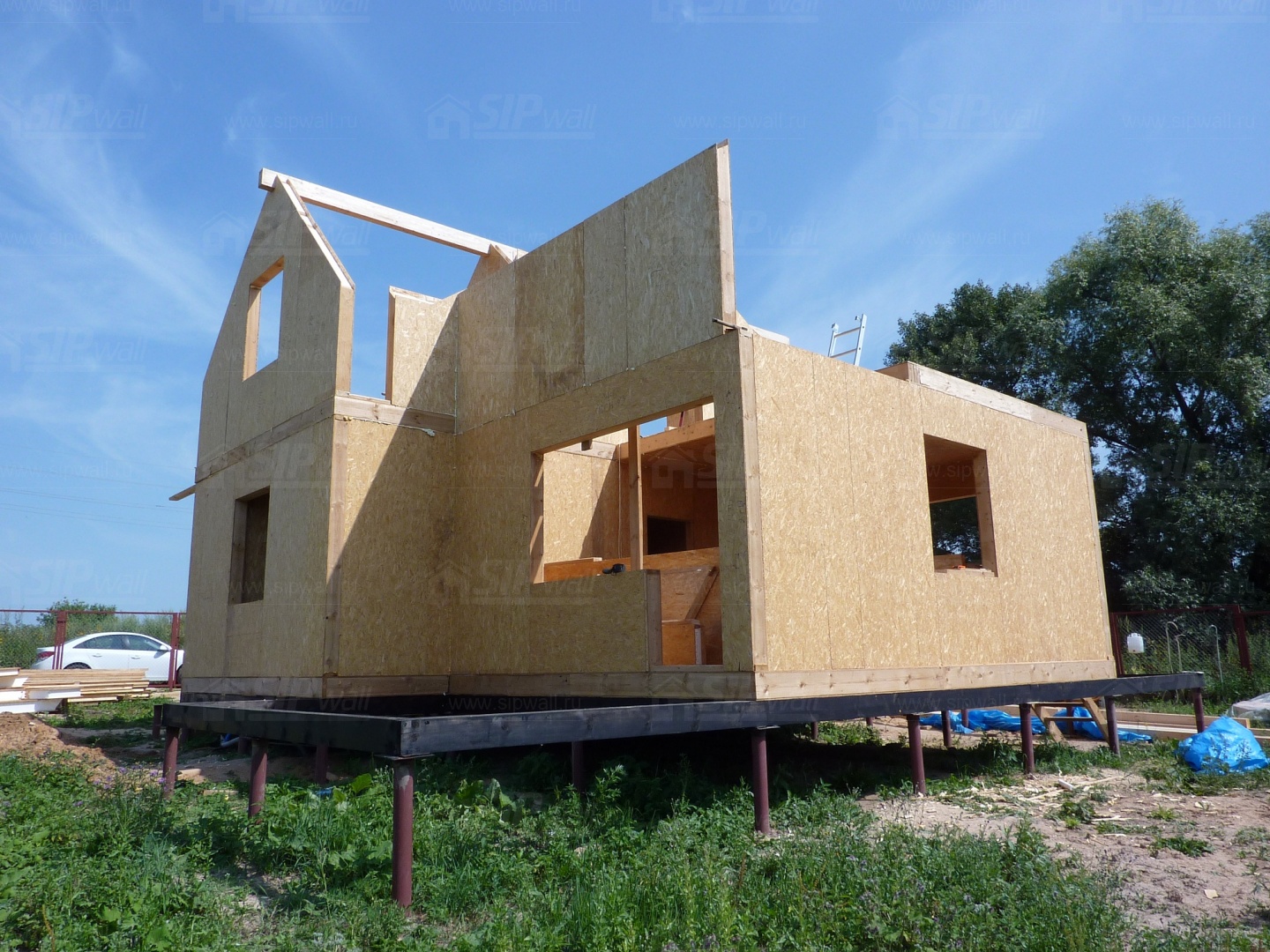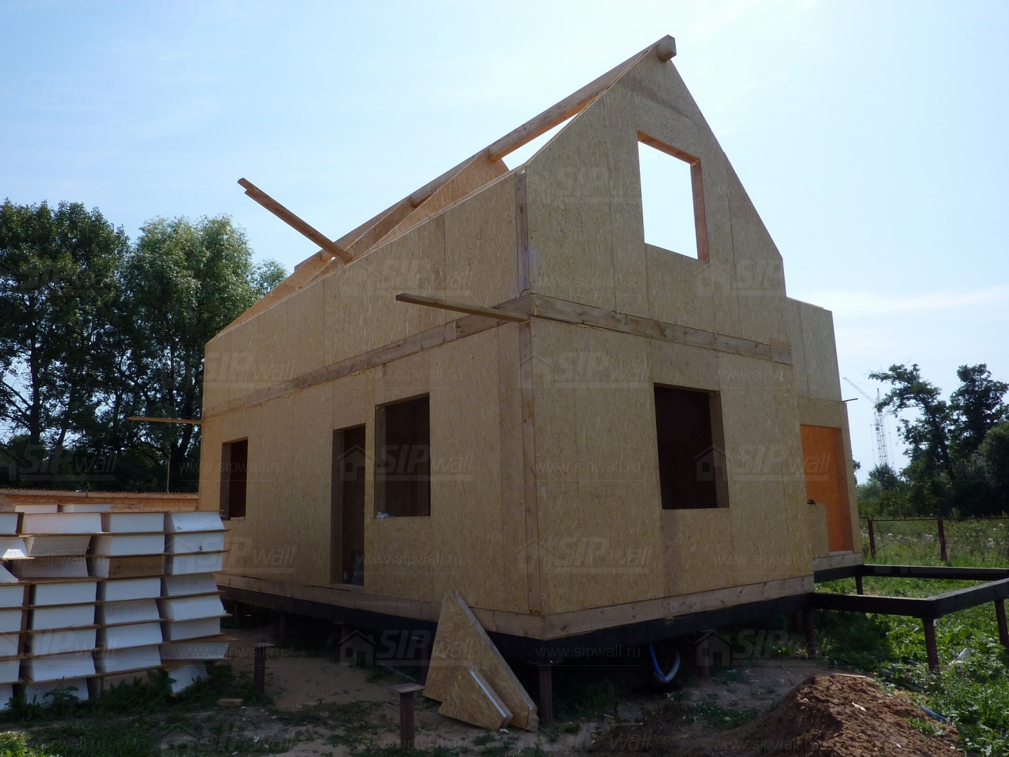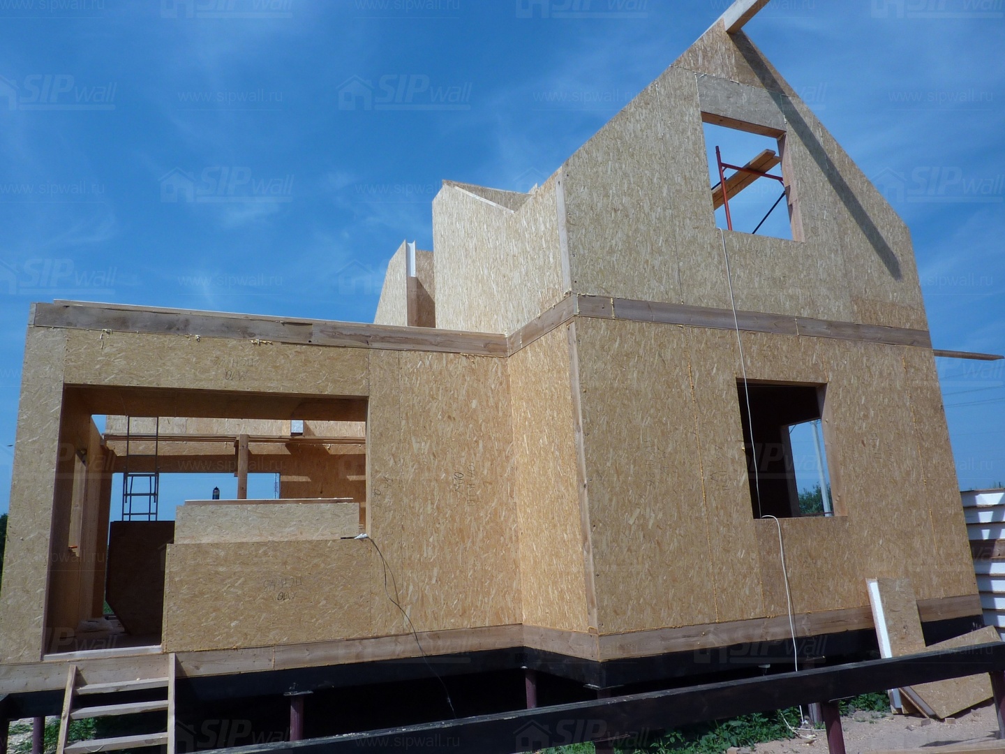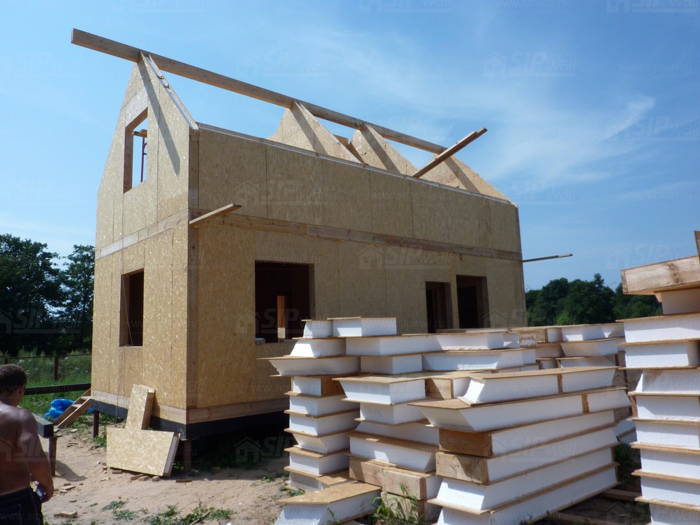 Все СИП панели SIPwall толщиной 224/174/124 мм (плиты OSB-3 толщиной 12 мм "Калевала" Россия и фасадный пенополистирол ПСБ-С 25 по ГОСТ 15588-14 толщиной 200/150/100 мм производства завода "PolarPlast", Россия) нарезаны и обрусованы сухим строганным брусом в соответствии с проектной документацией.