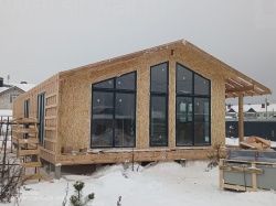 Монтаж домокомплекта из энергоэффективных СИП-панелей, обеспечивающих тепло и надежность.