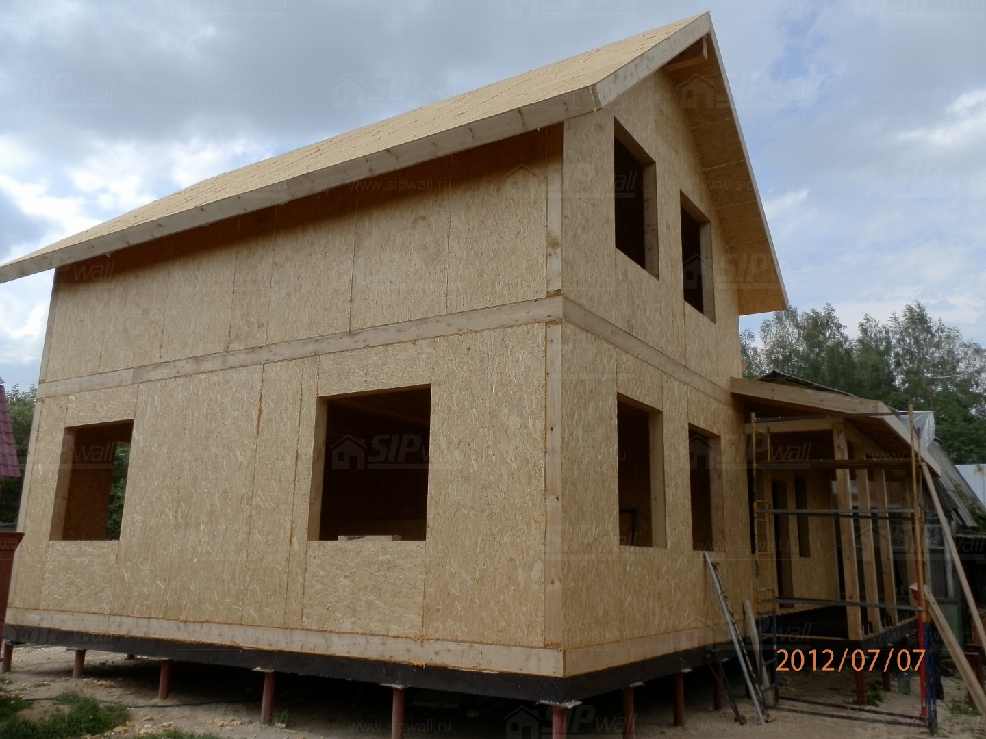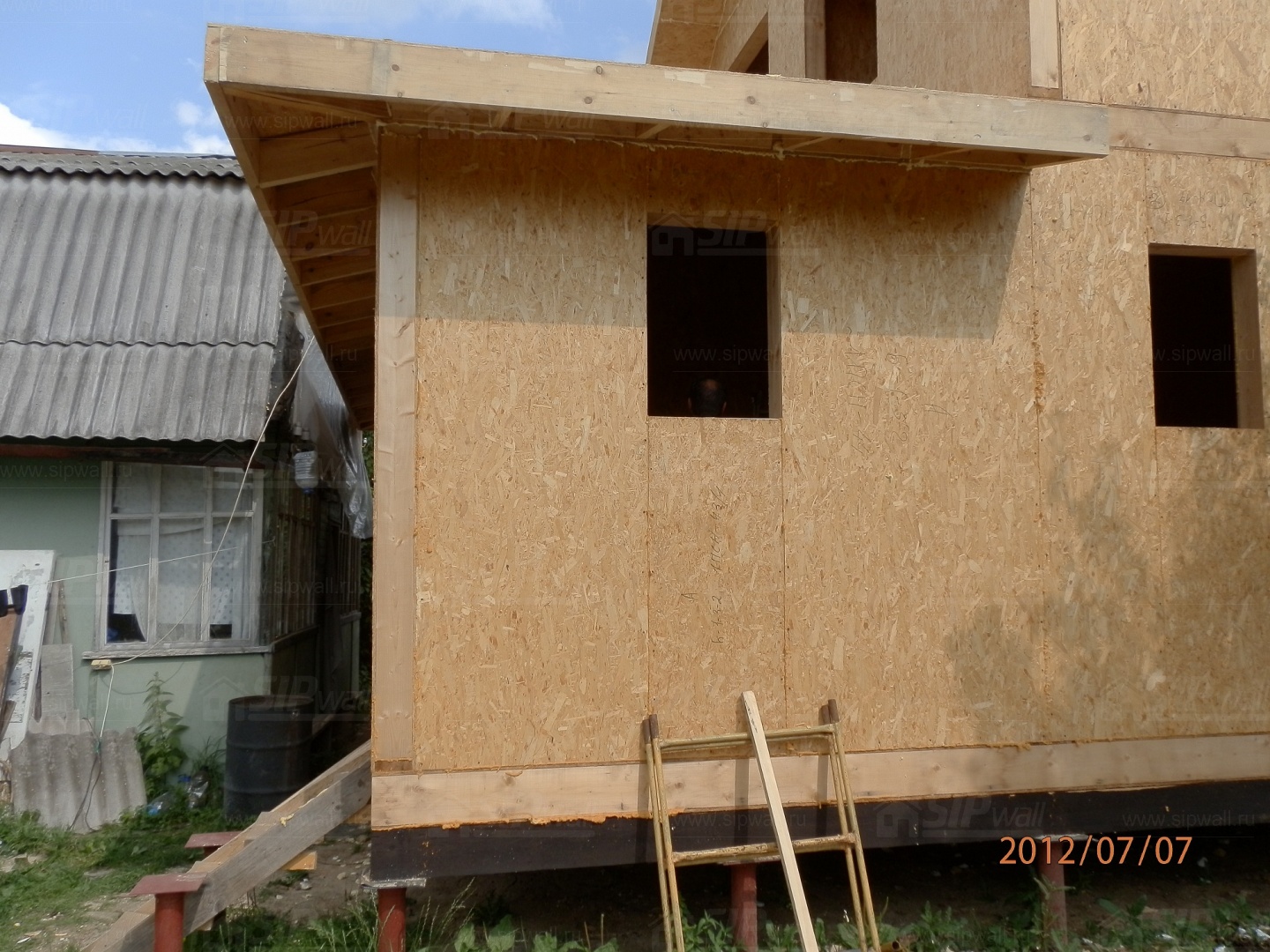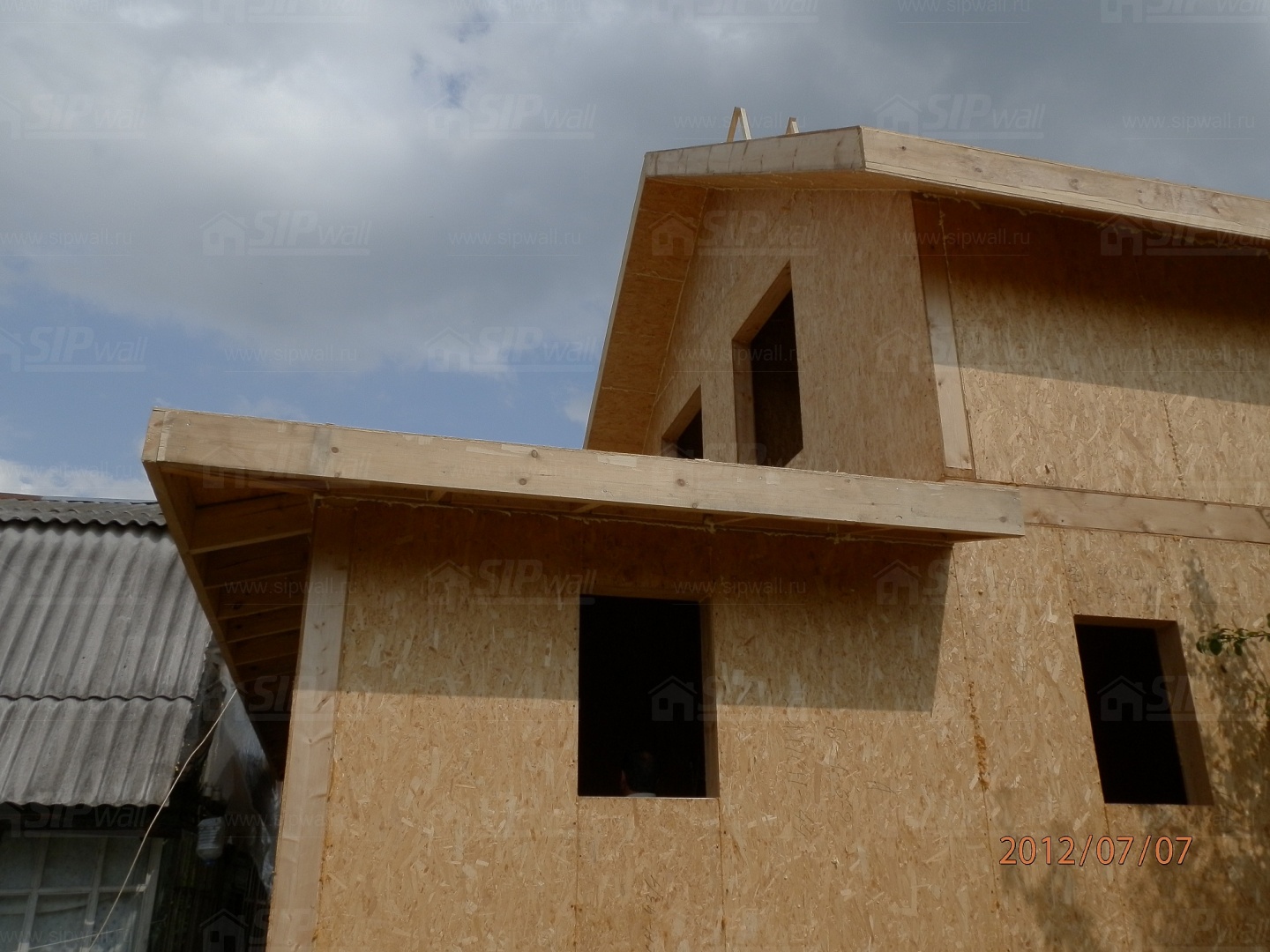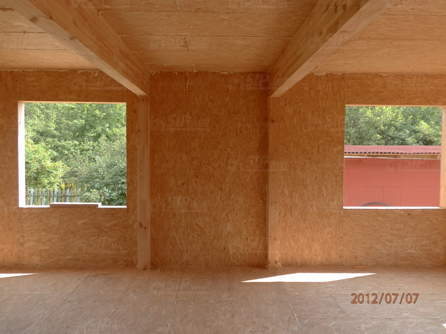Все СИП панели SIPwall толщиной 224/174/124 мм (плиты OSB-3 толщиной 12 мм "Калевала" Россия и фасадный пенополистирол ПСБ-С 25 по ГОСТ 15588-14 толщиной 200/150/100 мм производства завода "PolarPlast", Россия) нарезаны и обрусованы сухим строганным брусом в соответствии с проектной документацией.