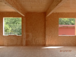 Домокомплект - изготовлен по проекту из СИП панелей произведенный по технологии SIPwall (ЭКОПАН) на собственном заводе расположенном в г. Шуя, Ивановской области. При изготовлении домокомплекта панельно каркасного дома используется только сухой строганный брус камерной сушки, обработанный огнебиозащитным составом.