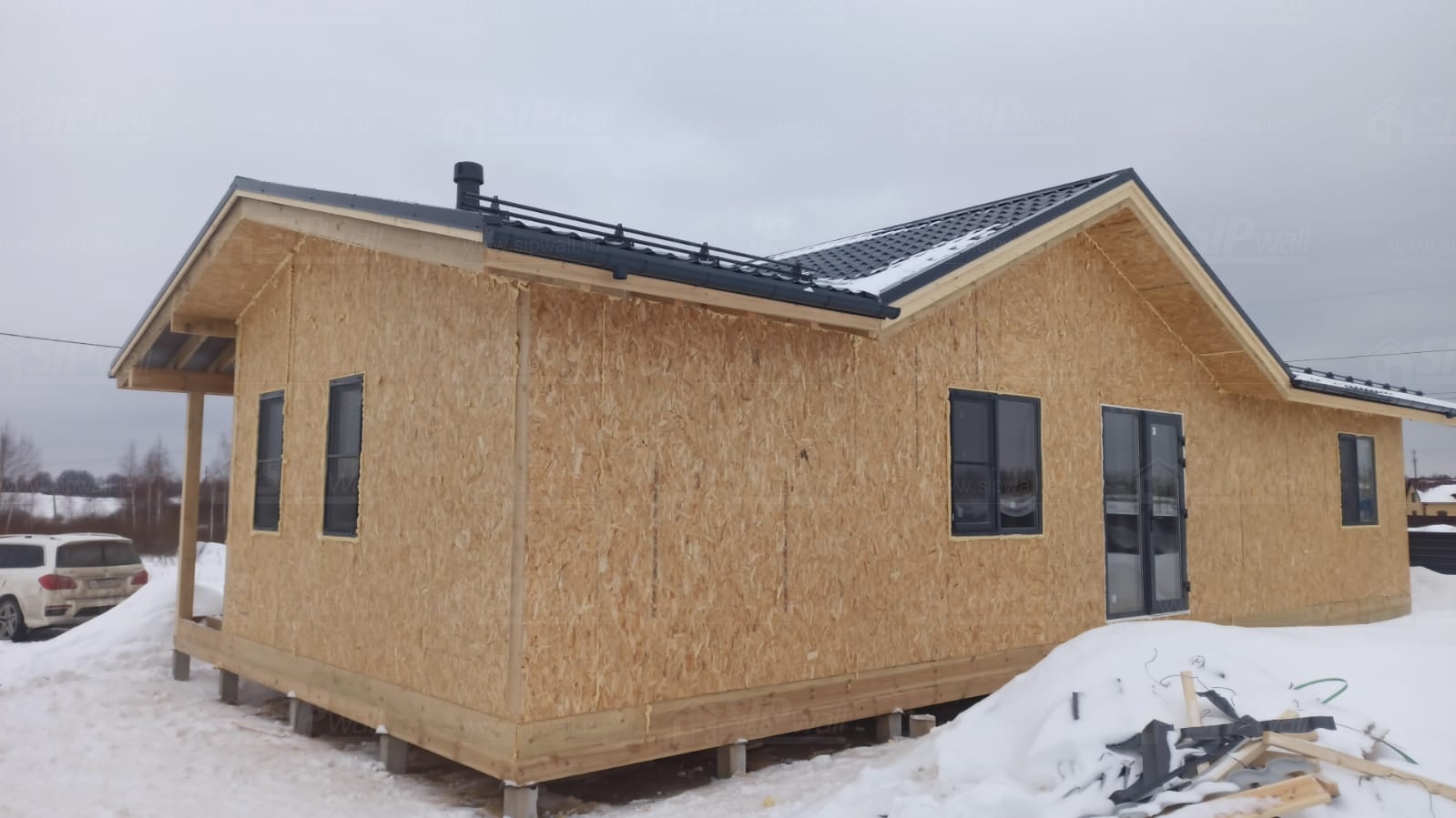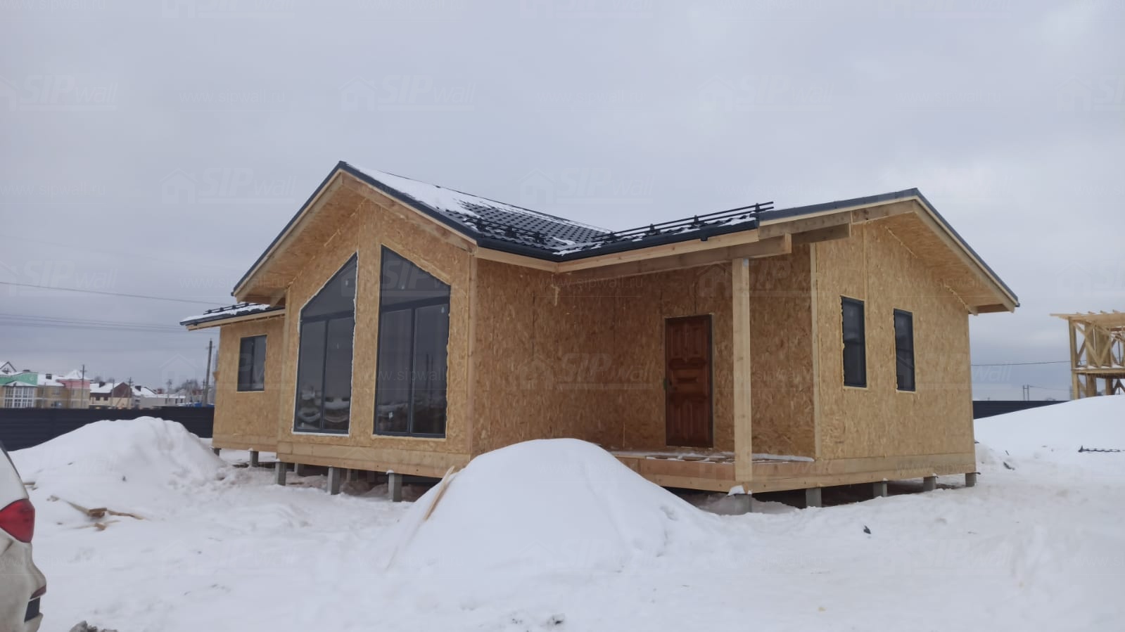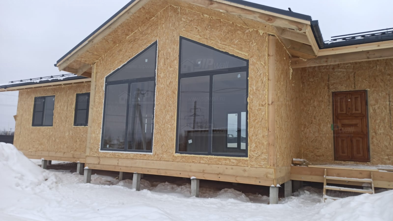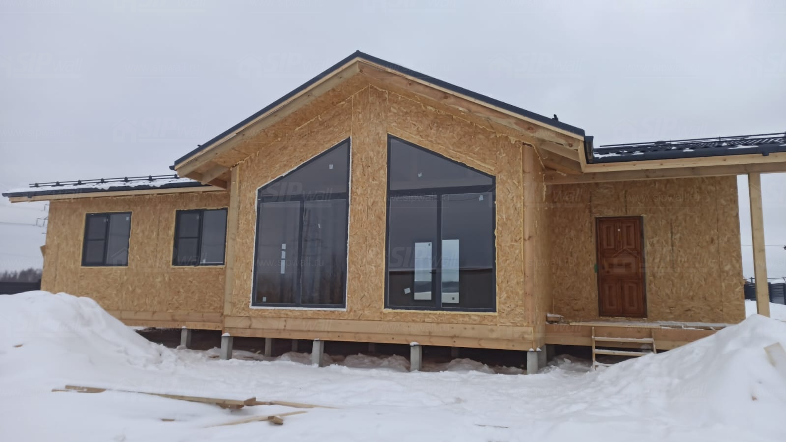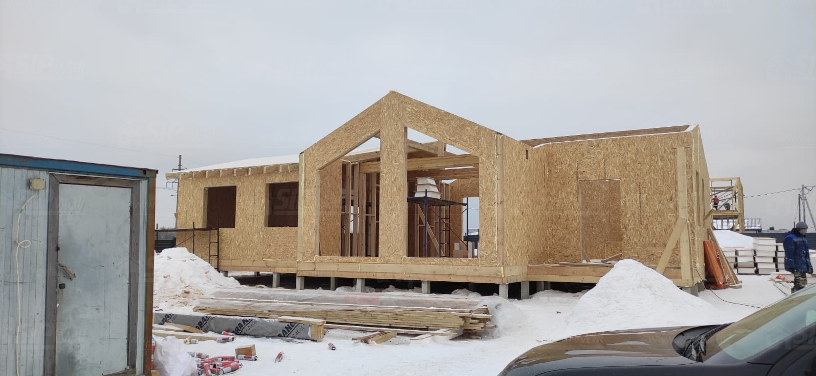 Все СИП панели SIPwall толщиной 224/174/124 мм (плиты OSB-3 толщиной 12 мм "Калевала" Россия и фасадный пенополистирол ППС-14 толщиной 200/150/100 мм производства, Россия) нарезаны и обрусованы сухим строганным брусом камерной сушки в соответствии с проектной документацией.