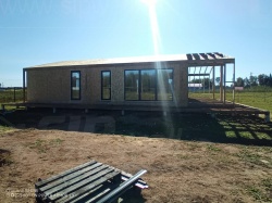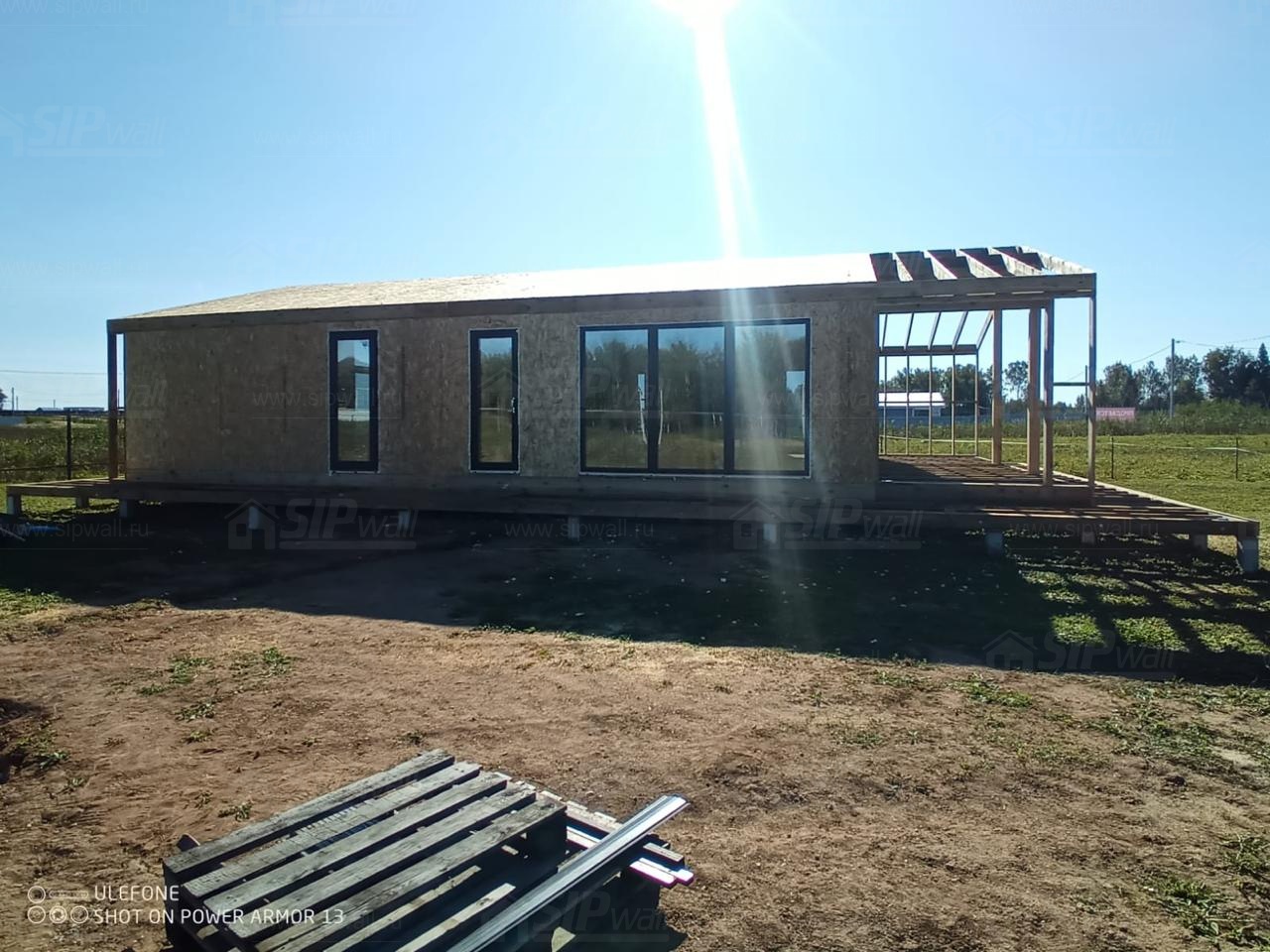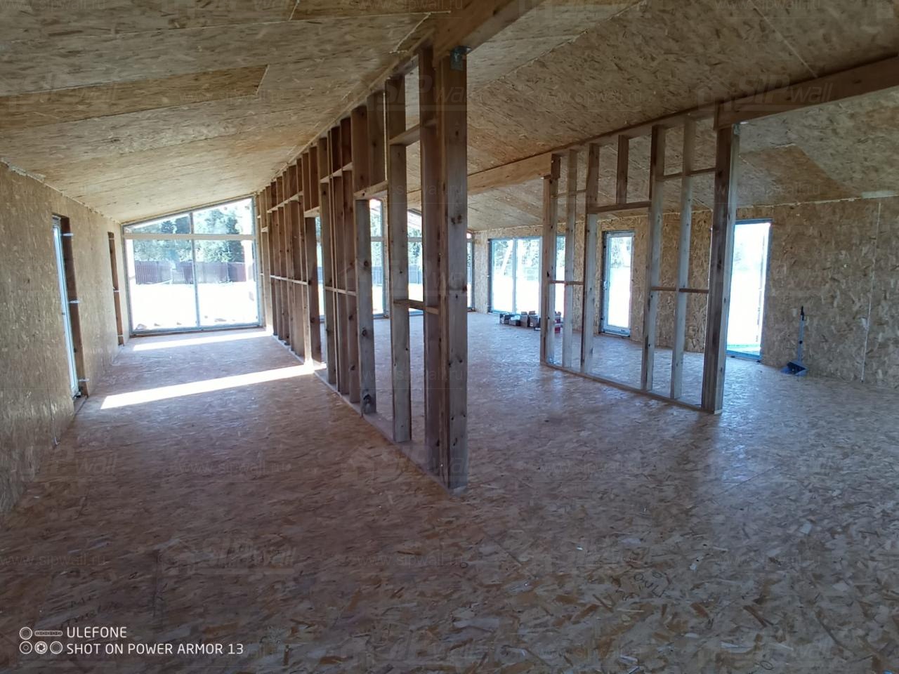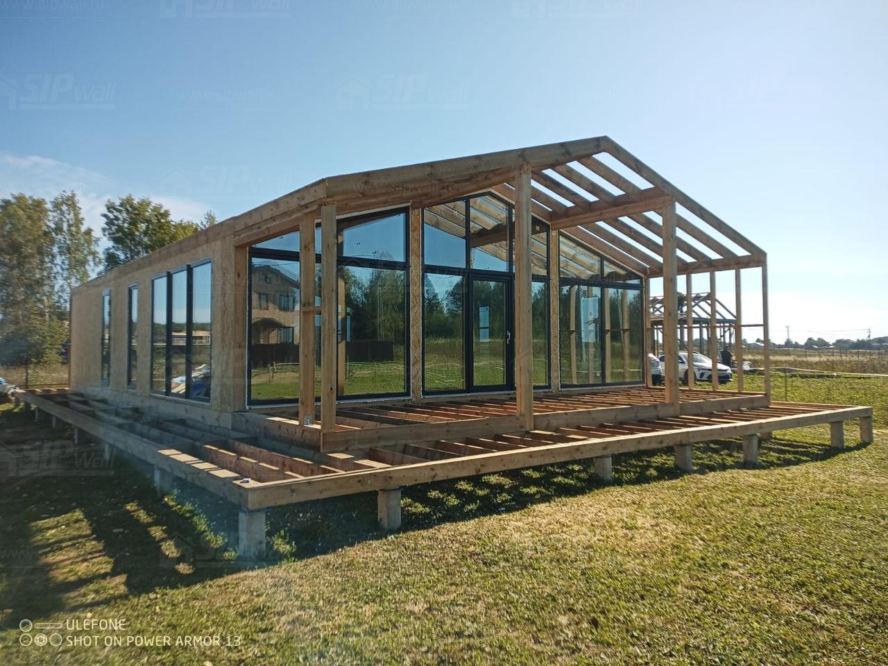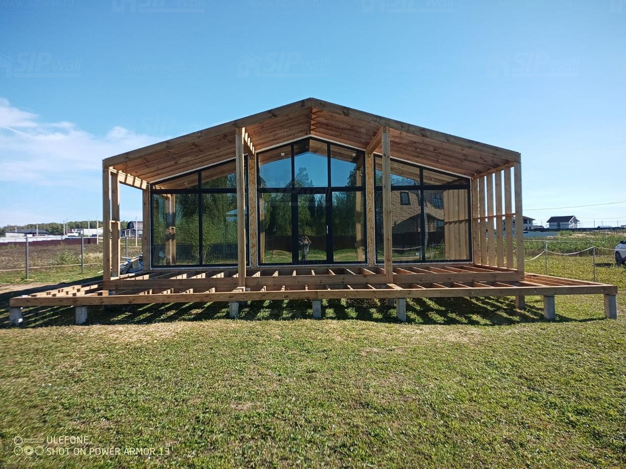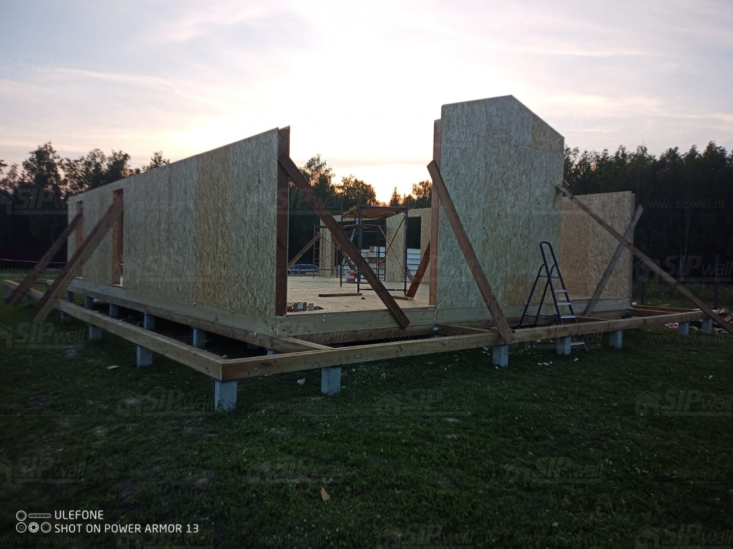 Сборка домокомплекта: Монтаж стен и перекрытий из СИП панелей, что гарантирует высокую теплоизоляцию и прочность.