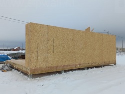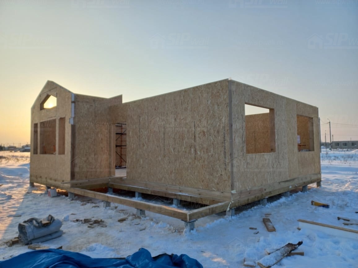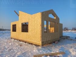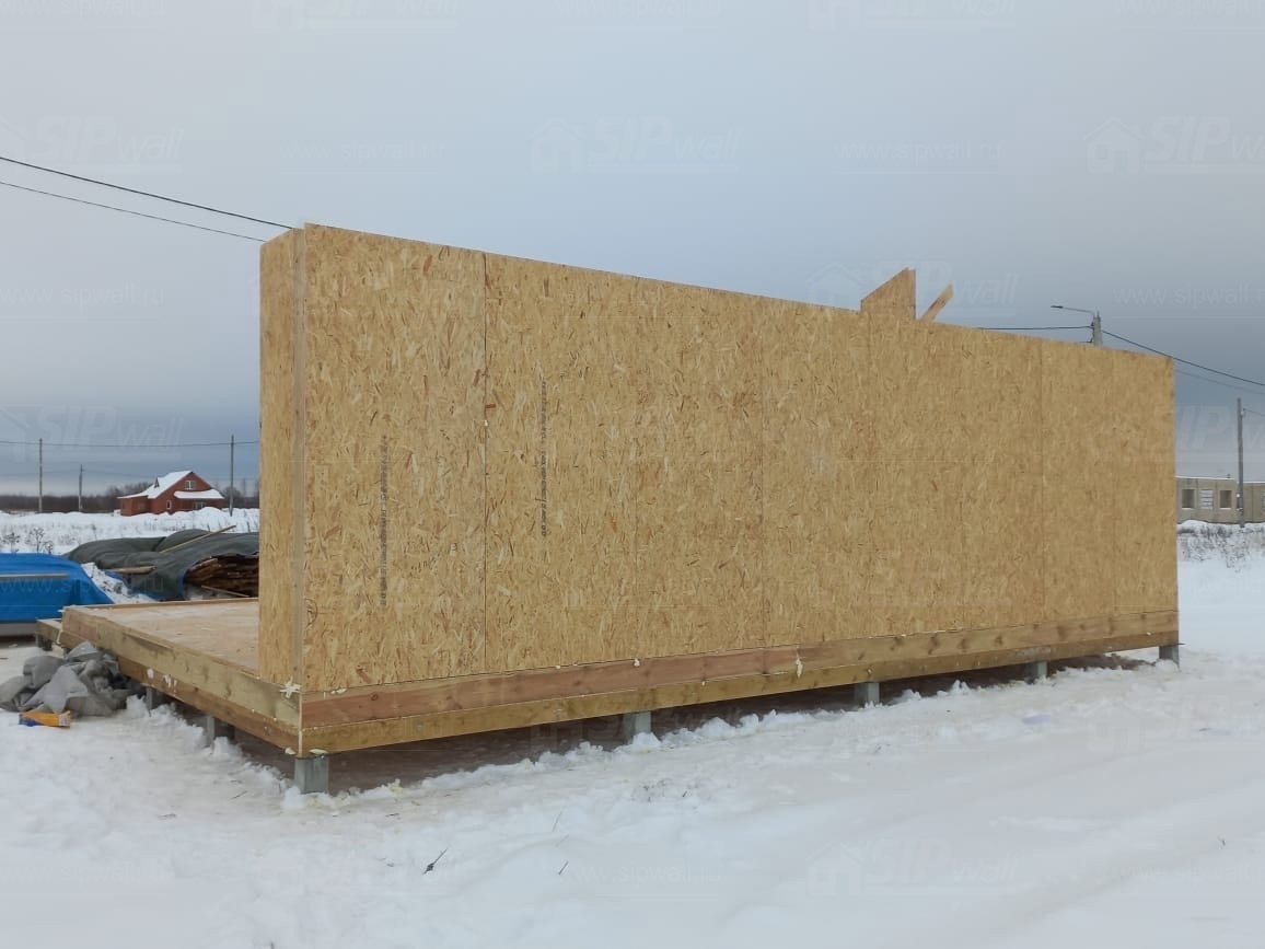 Все СИП панели SIPwall толщиной 224/174/124 мм (плиты OSB-3 толщиной 12 мм "Калевала" Россия и фасадный пенополистирол ППС-14 толщиной 200/150/100 мм производства, Россия) нарезаны и обрусованы сухим строганным брусом камерной сушки в соответствии с проектной документацией.