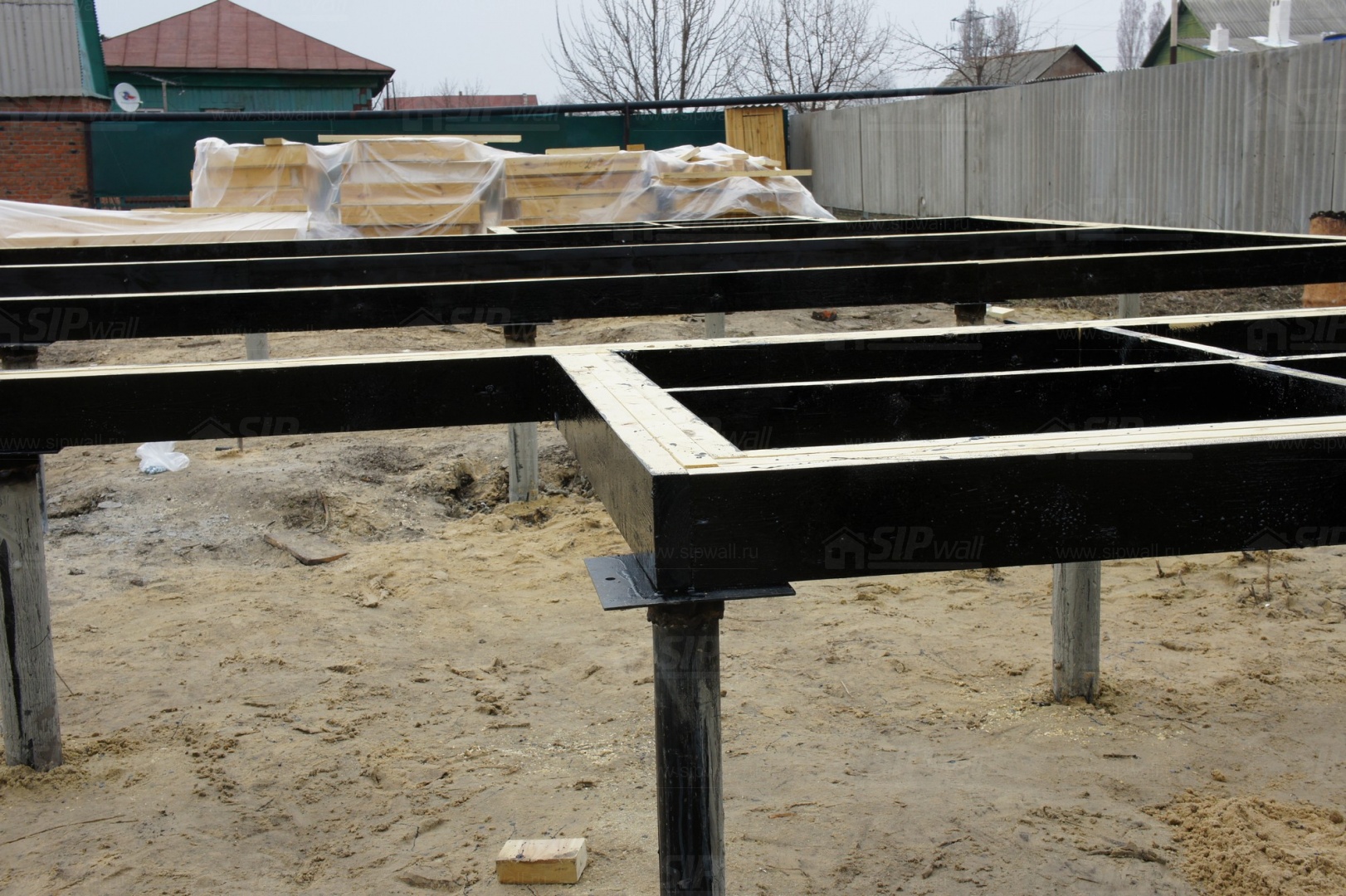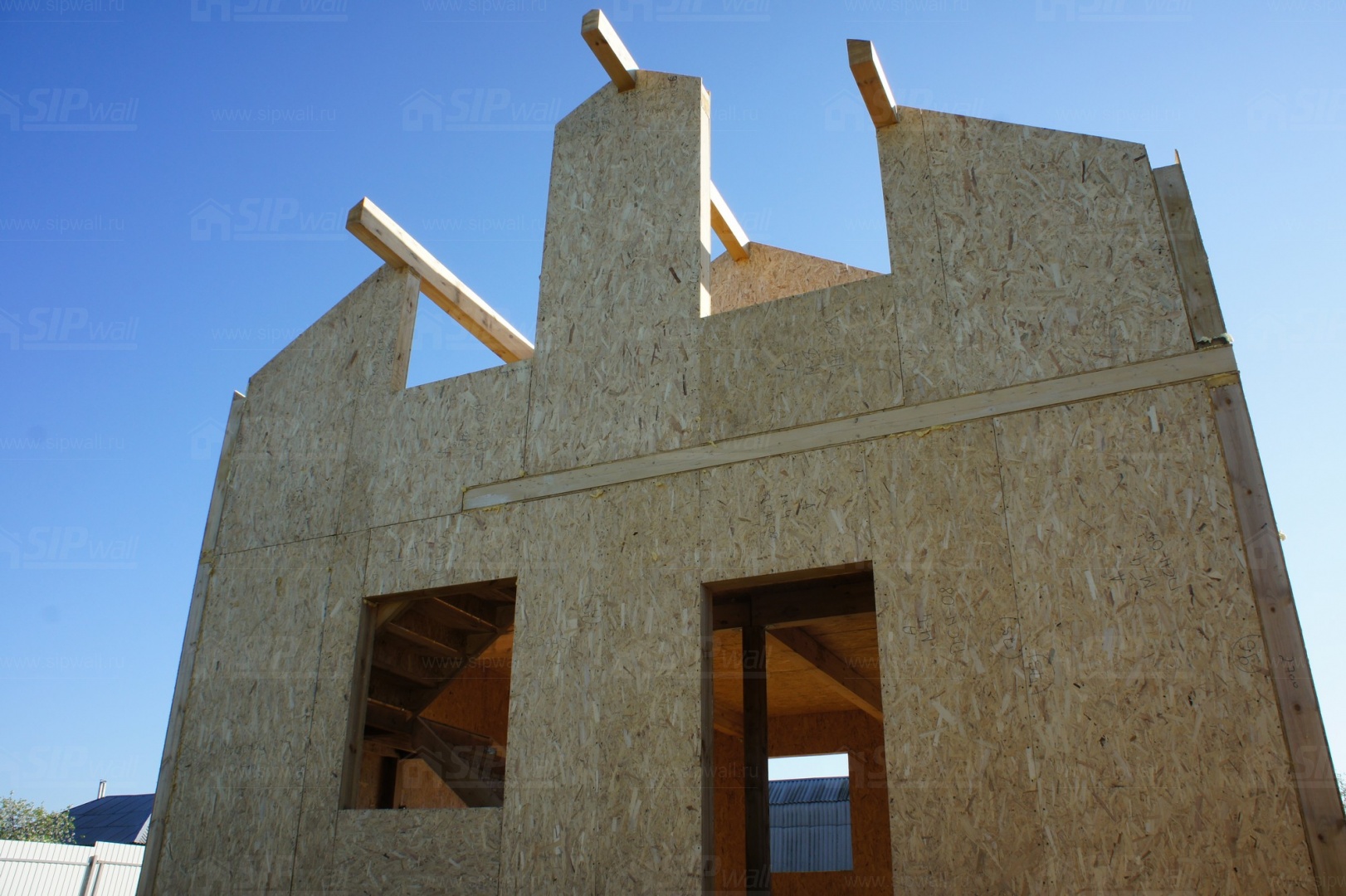Все СИП панели домокомплекта нарезаны и обрусованы сухим строганным брусом в соответствии с проектной документацией, разработанной собственным проектным отдел компании "SIPwall".