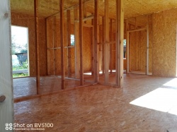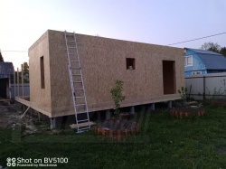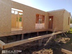Все СИП панели SIPwall толщиной 224/174/124 мм (плиты OSB-3 толщиной 12 мм "Калевала" Россия и фасадный пенополистирол ППС-14 толщиной 200/150/100 мм производства, Россия) нарезаны и обрусованы сухим строганным брусом камерной сушки в соответствии с проектной документацией.