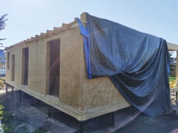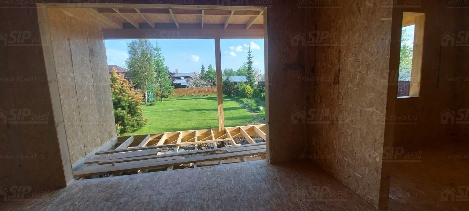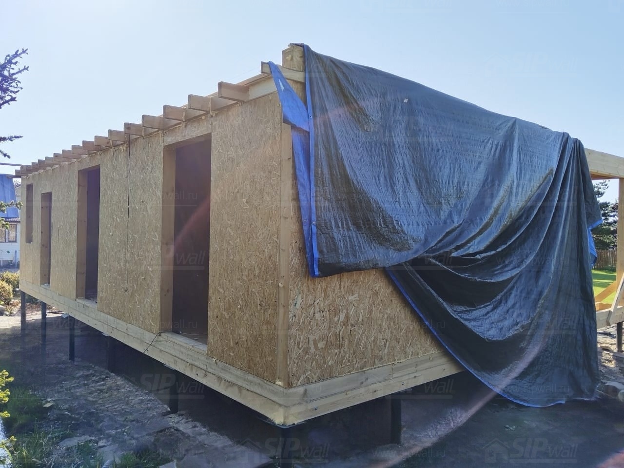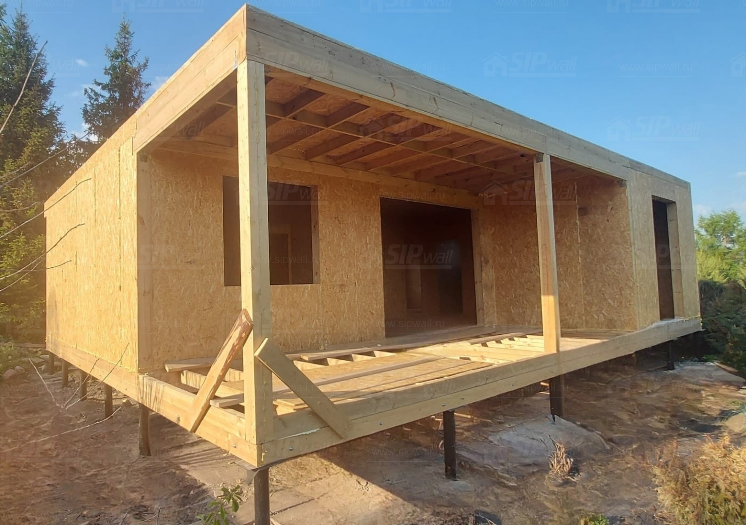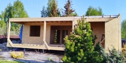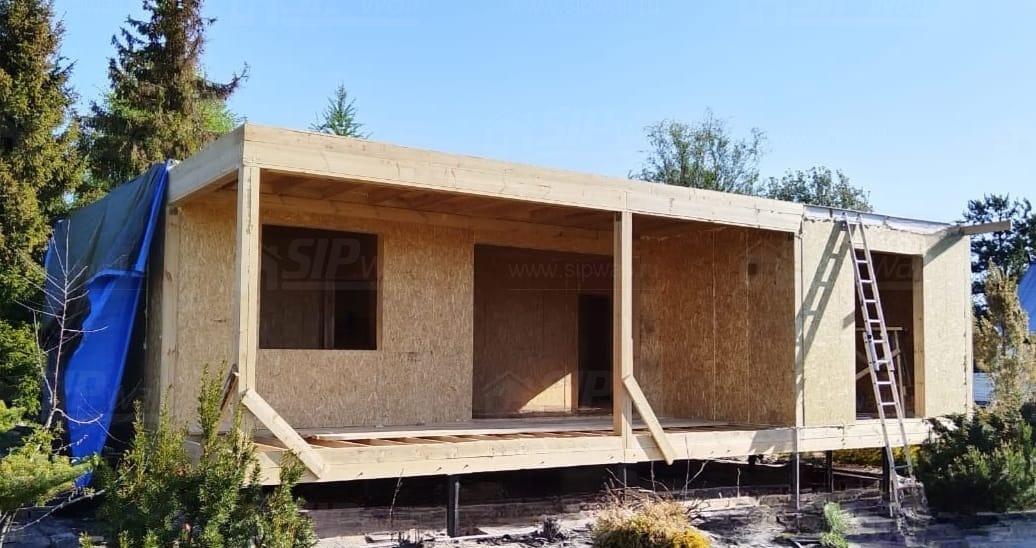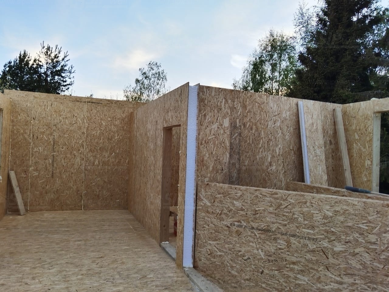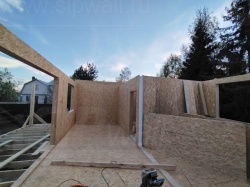 Все СИП панели SIPwall толщиной 224/174/124 мм (плиты OSB-3 толщиной 12 мм "Калевала" Россия и фасадный пенополистирол ППС-14 толщиной 200/150/100 мм производства, Россия) нарезаны и обрусованы сухим строганным брусом камерной сушки в соответствии с проектной документацией.