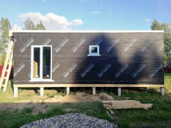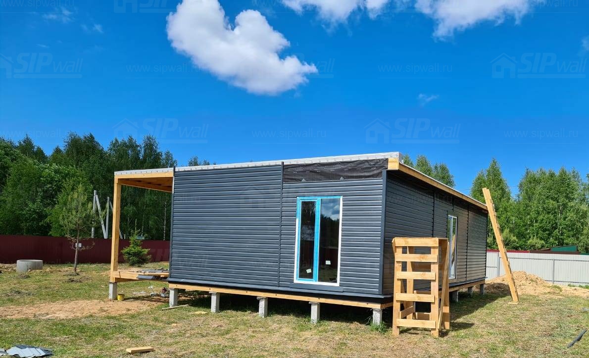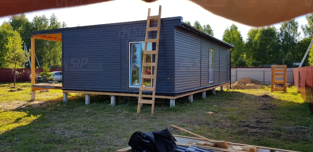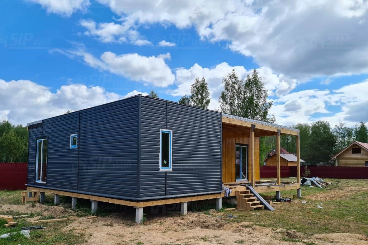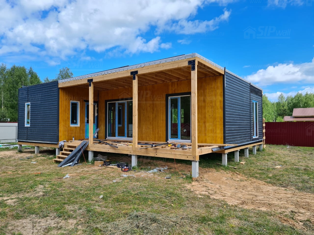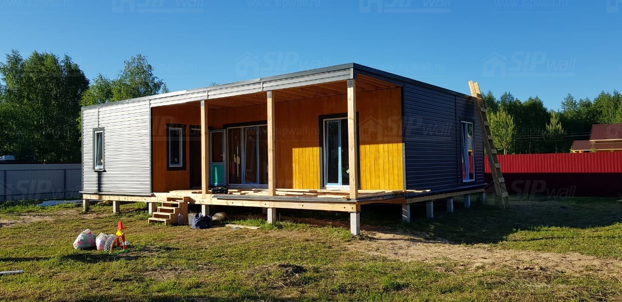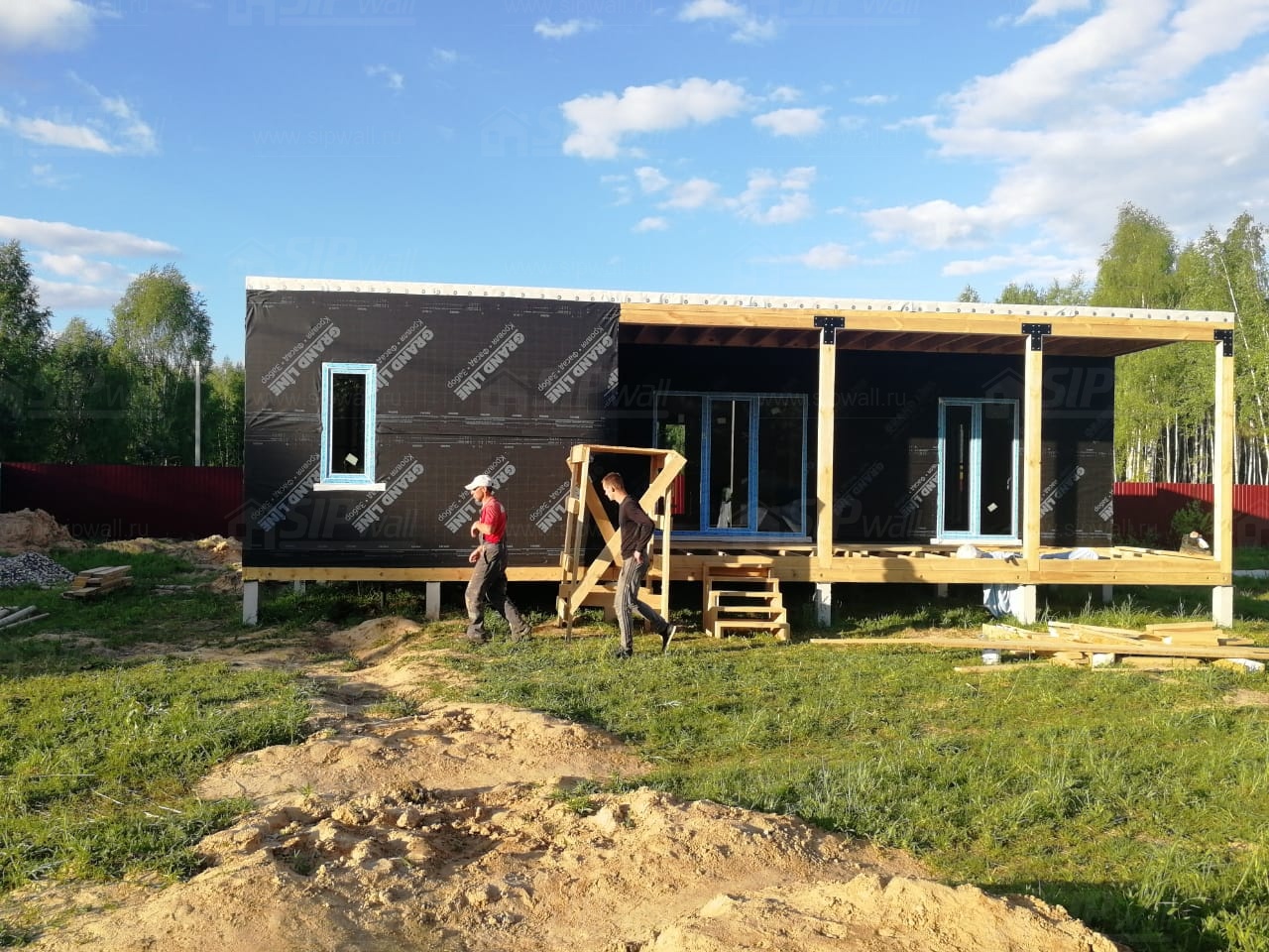 Все СИП панели SIPwall толщиной 224/174/124 мм (плиты OSB-3 толщиной 12 мм "Калевала" Россия и фасадный пенополистирол ППС-14 толщиной 200/150/100 мм производства, Россия) нарезаны и обрусованы сухим строганным брусом камерной сушки в соответствии с проектной документацией.