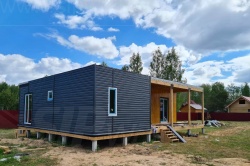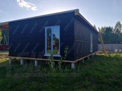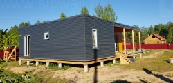 Домокомплект - изготовлен по проекту из СИП панелей произведенный по технологии SIPwall (ЭКОПАН) на собственном заводе расположенном в г. Шуя, Ивановской области. При изготовлении домокомплекта панельно каркасного дома используется только сухой строганный брус камерной сушки, обработанный огнебиозащитным составом.