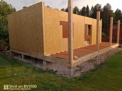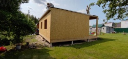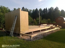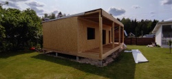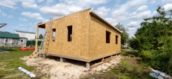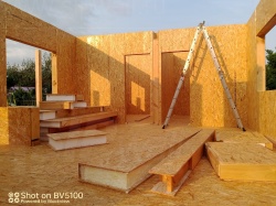 Все СИП панели SIPwall толщиной 224/174/124 мм (плиты OSB-3 толщиной 12 мм "Калевала" Россия и фасадный пенополистирол ППС-14 толщиной 200/150/100 мм производства, Россия) нарезаны и обрусованы сухим строганным брусом камерной сушки в соответствии с проектной документацией.