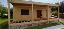 Домокомплект - изготовлен по проекту из СИП панелей произведенный по технологии SIPwall (ЭКОПАН) на собственном заводе расположенном в г. Шуя, Ивановской области. При изготовлении домокомплекта панельно каркасного дома используется только сухой строганный брус камерной сушки, обработанный огнебиозащитным составом.