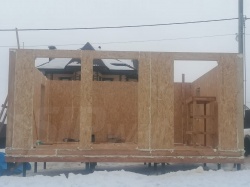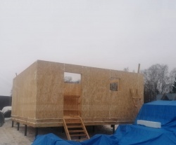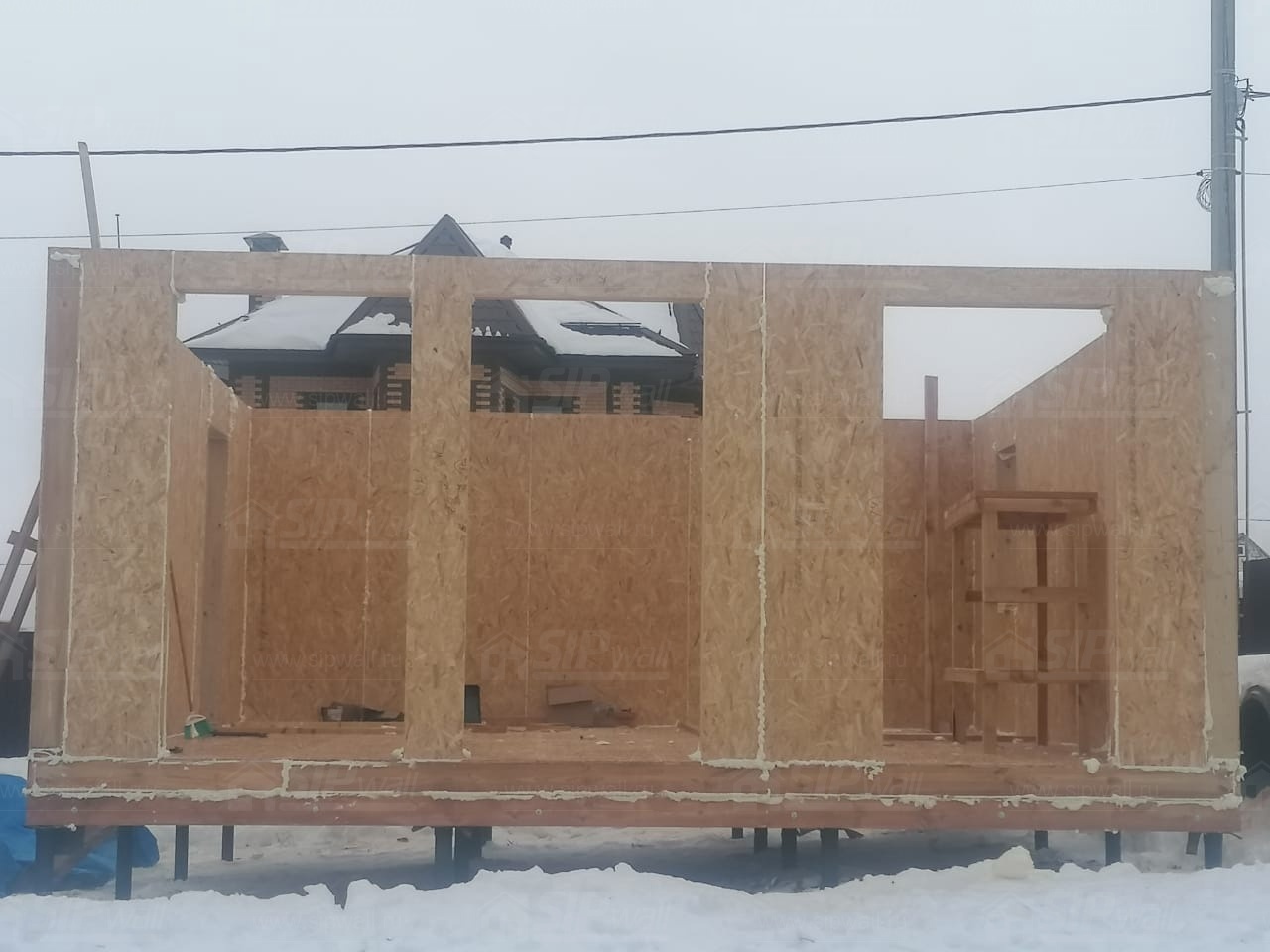 Все СИП панели SIPwall толщиной 224/174/124 мм (плиты OSB-3 толщиной 12 мм "Калевала" Россия и фасадный пенополистирол ППС-14 толщиной 200/150/100 мм производства, Россия) нарезаны и обрусованы сухим строганным брусом камерной сушки в соответствии с проектной документацией.