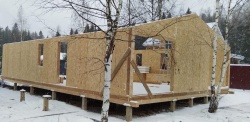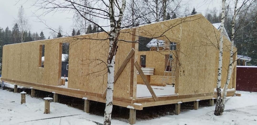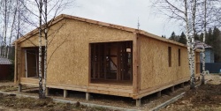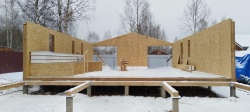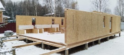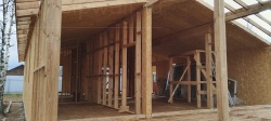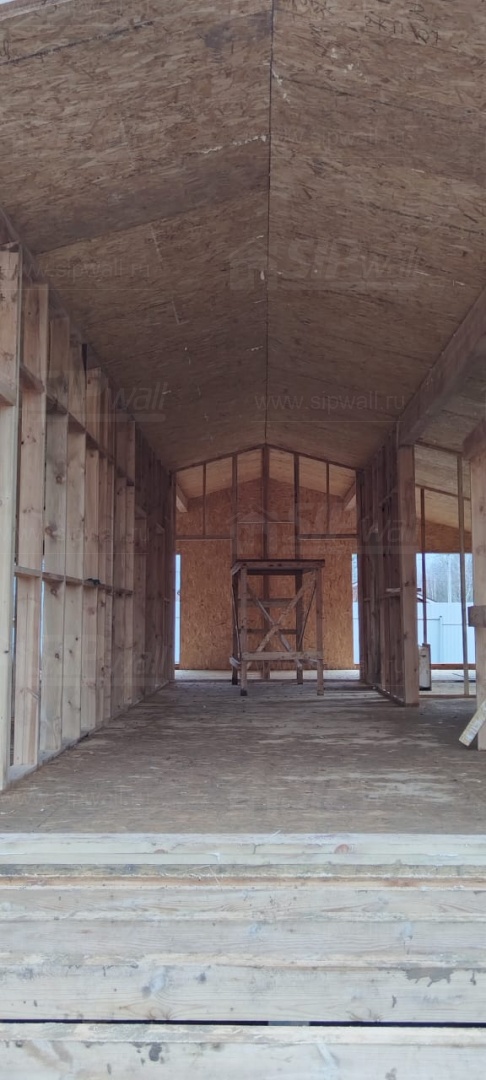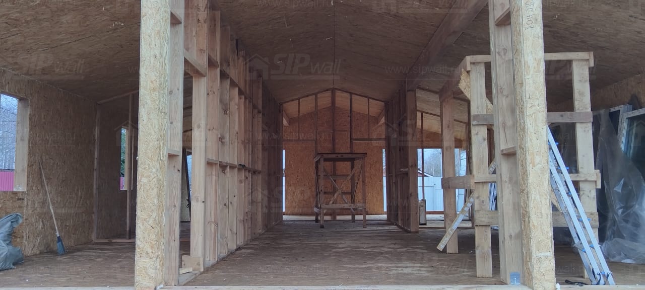 Все СИП панели SIPwall толщиной 224/174/124 мм (плиты OSB-3 толщиной 12 мм "Калевала" Россия и фасадный пенополистирол ППС-14 толщиной 200/150/100 мм производства, Россия) нарезаны и обрусованы сухим строганным брусом камерной сушки в соответствии с проектной документацией.