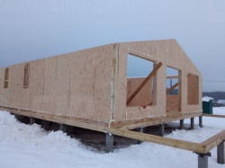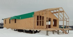 Комплектация домокомплекта: перекрытие на отметке +0.000 - СИП - 174У мм, несущие стены дома выполнены из СИП панелей 174 мм, внутренние несущие стены - СИП 174 мм, не несущие стены - СИП 124 мм Кровля - СИП 174У.