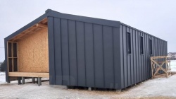 Все СИП панели SIPwall толщиной 224/174/124 мм (плиты OSB-3 толщиной 12 мм "Калевала" Россия и фасадный пенополистирол ППС-14 толщиной 200/150/100 мм производства, Россия) нарезаны и обрусованы сухим строганным брусом камерной сушки в соответствии с проектной документацией.