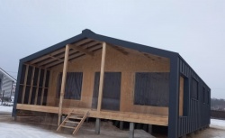 Домокомплект - изготовлен по проекту из СИП панелей произведенный по технологии SIPwall (ЭКОПАН) на собственном заводе расположенном в г. Шуя, Ивановской области. При изготовлении домокомплекта панельно каркасного дома используется только сухой строганный брус камерной сушки, обработанный огнебиозащитным составом.