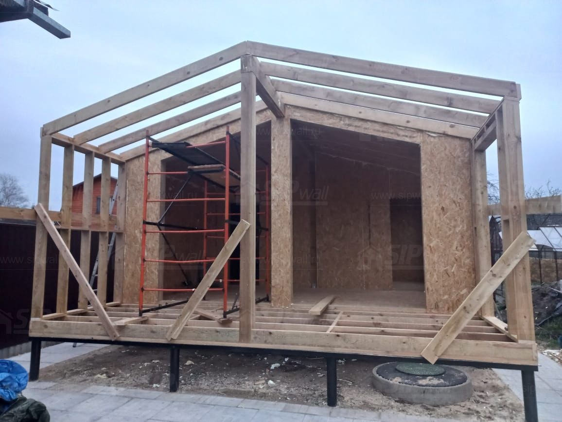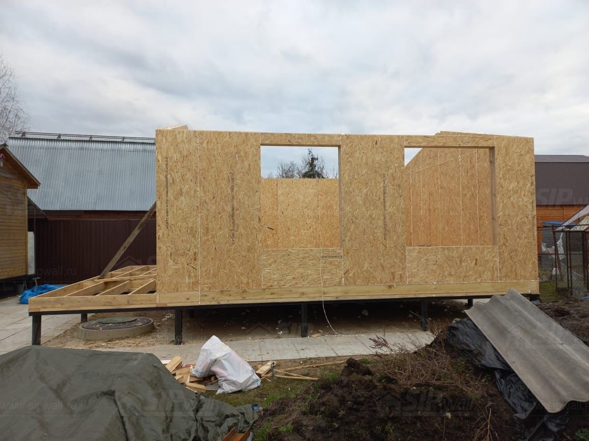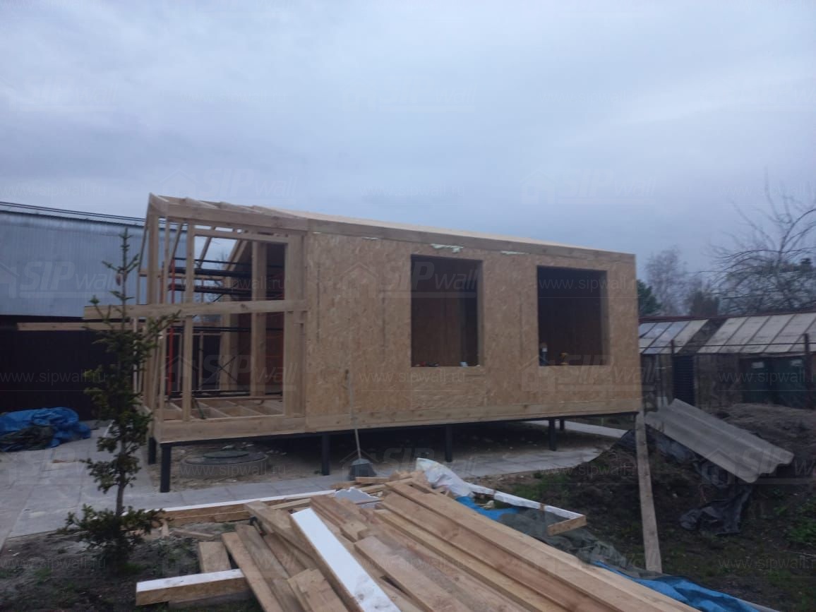 Все СИП панели SIPwall толщиной 224/174/124 мм (плиты OSB-3 толщиной 12 мм "Калевала" Россия и фасадный пенополистирол ППС-14 толщиной 200/150/100 мм производства, Россия) нарезаны и обрусованы сухим строганным брусом камерной сушки в соответствии с проектной документацией.