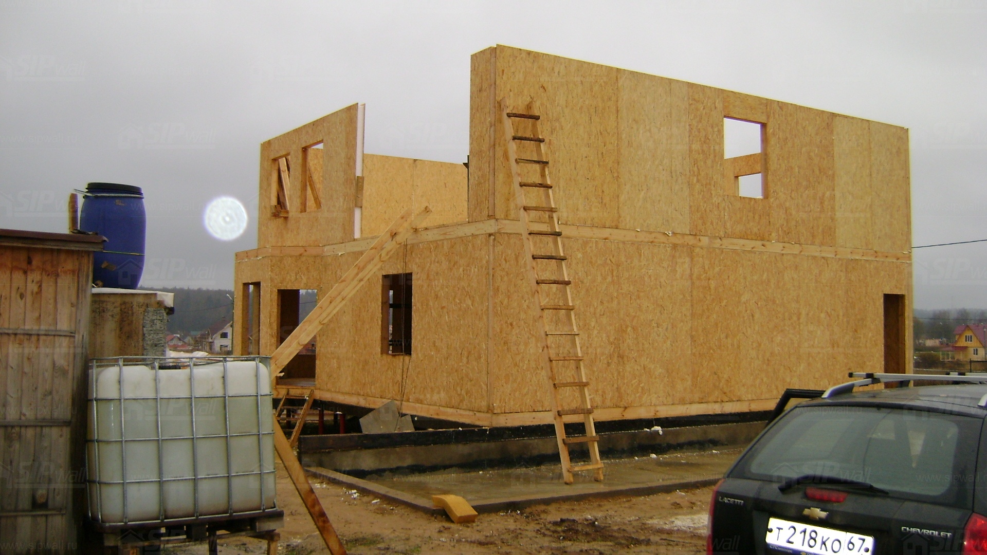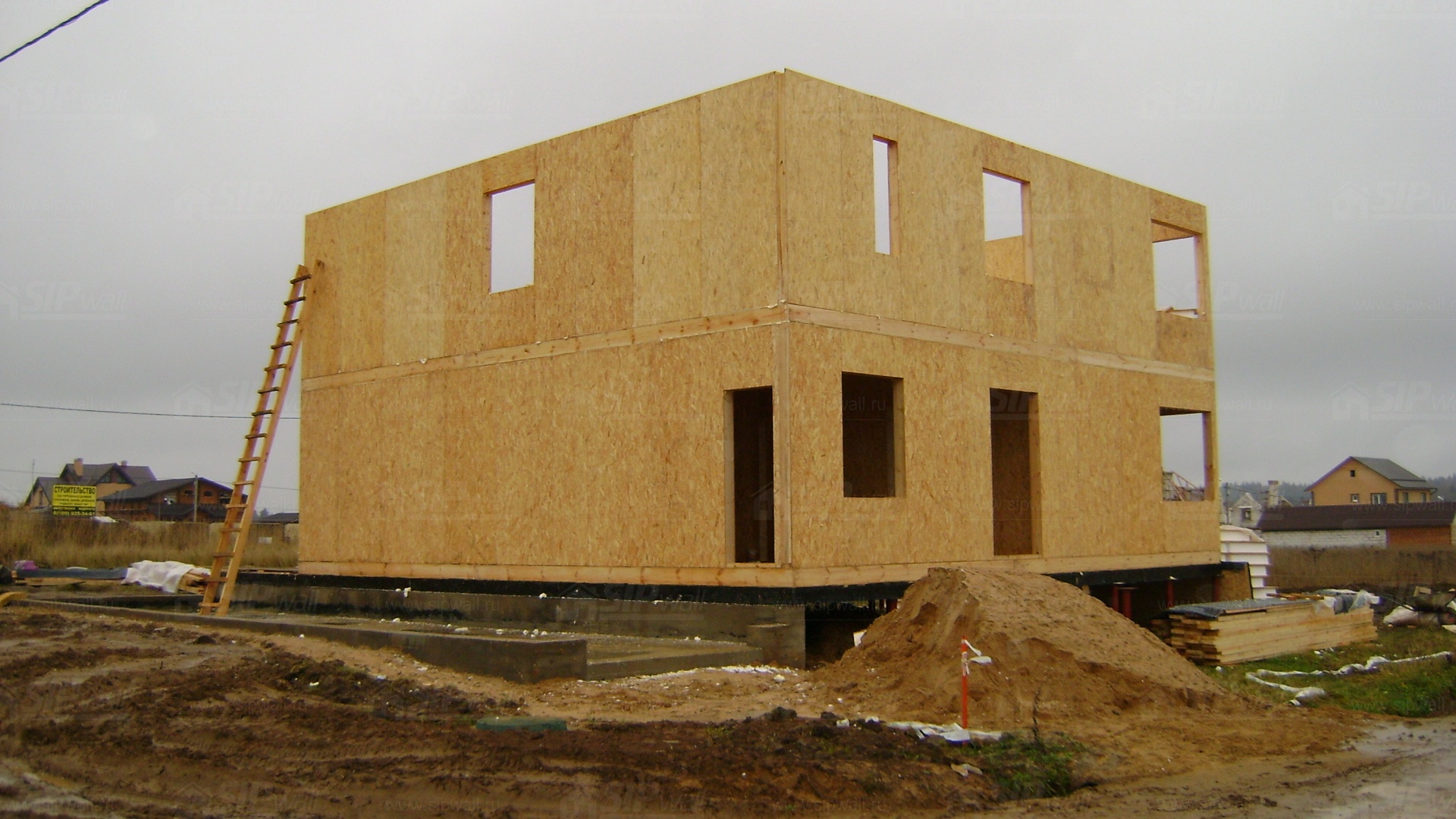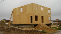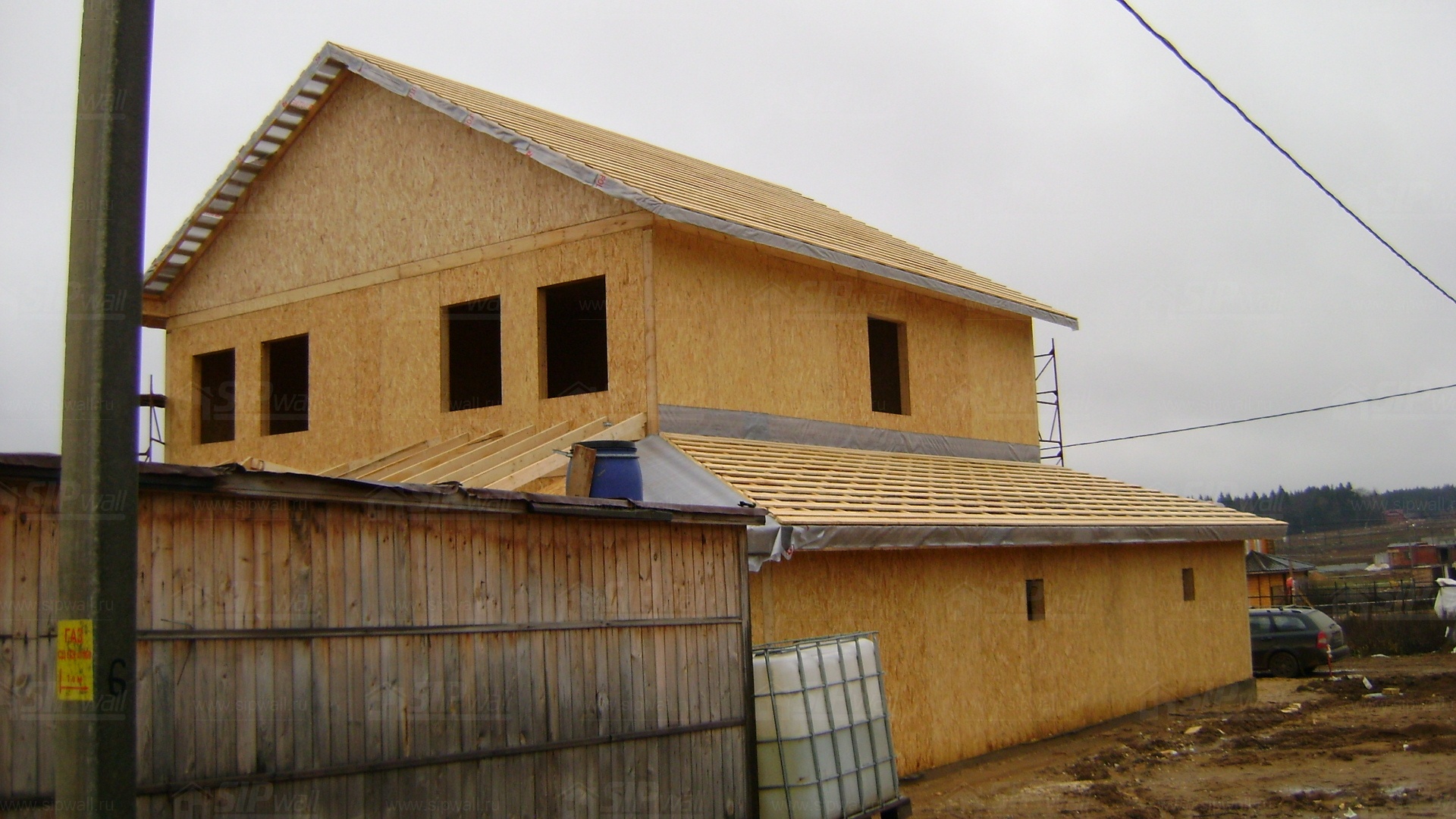 Все СИП панели SIPwall толщиной 224/174/124 мм (плиты OSB-3 толщиной 12 мм "Калевала" Россия и фасадный пенополистирол ПСБ-С 25 по ГОСТ 15588-14 толщиной 200/150/100 мм производства завода "PolarPlast", Россия) нарезаны и обрусованы сухим строганным брусом в соответствии с проектной документацией.