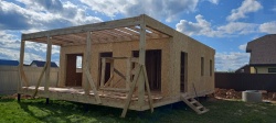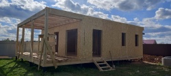 Домокомплект - изготовлен по проекту из СИП панелей произведенный по технологии SIPwall (ЭКОПАН) на собственном заводе расположенном в г. Шуя, Ивановской области. При изготовлении домокомплекта панельно каркасного дома используется только сухой строганный брус камерной сушки, обработанный огнебиозащитным составом.