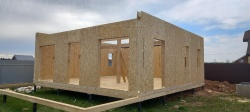 Все СИП панели SIPwall толщиной 224/174/124 мм (плиты OSB-3 толщиной 12 мм "Калевала" Россия и фасадный пенополистирол ППС-14 толщиной 200/150/100 мм производства, Россия) нарезаны и обрусованы сухим строганным брусом камерной сушки в соответствии с проектной документацией.