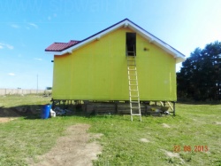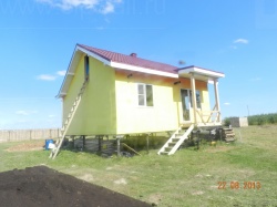 Выполнены работы: устройство фундамента на винтовых сваях, изготовление и монтаж домокомплекта, устройство кровли и фасада.