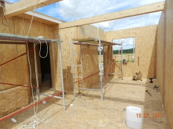 Все СИП панели SIPwall толщиной 224/174/124 мм (плиты OSB-3 толщиной 12 мм "Калевала" Россия, высшего класса экологической безопасности и фасадный пенополистирол ПСБ-С 25 высшей категории качества по ГОСТ 15588-06 толщиной 200/150/100 мм производства завода "PolarPlast" Россия) нарезаны и обрусованы сухим строганным брусом в соответствии с проектной документацией.