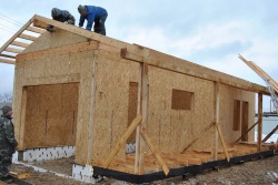 Домокомплект - изготовлен по проекту ГАРАЖ - 68.25 из СИП панелей произведенный по технологии SIPwall (ЭКОПАН) на собственном заводе расположенном в г. Шуя, Ивановской области. При изготовлении домокомплекта панельно каркасного дома используется только сухой строганный брус камерной сушки, обработанный огнебиозащитным составом.