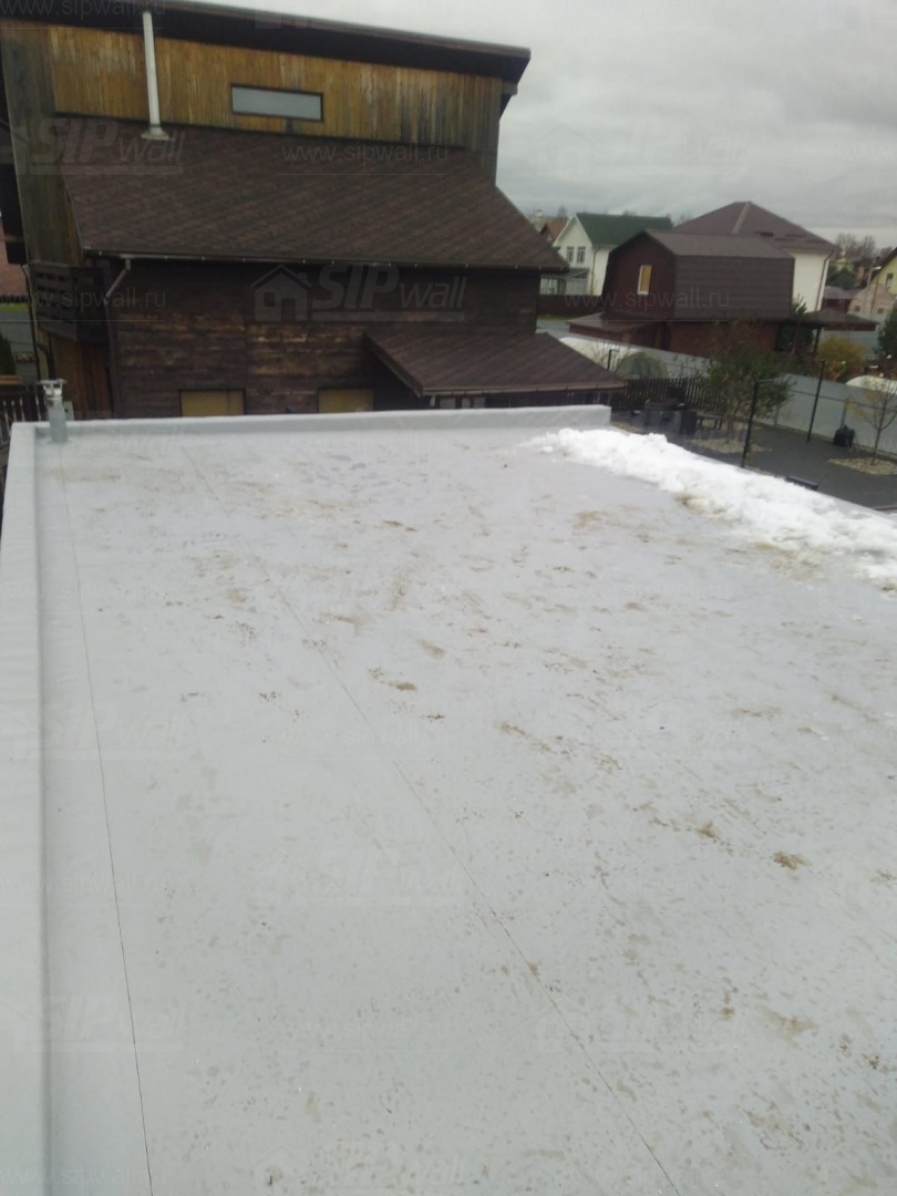 Комплектация домокомплекта: перекрытие на отметке +0.000 - СИП - 174У мм., несущие стены дома выполнены из СИП панелей 174 мм., внутренние несущие стены и внутренние не несущие перегородки выполнены по каркасной технологии. Кровля - СИП - 174У мм.