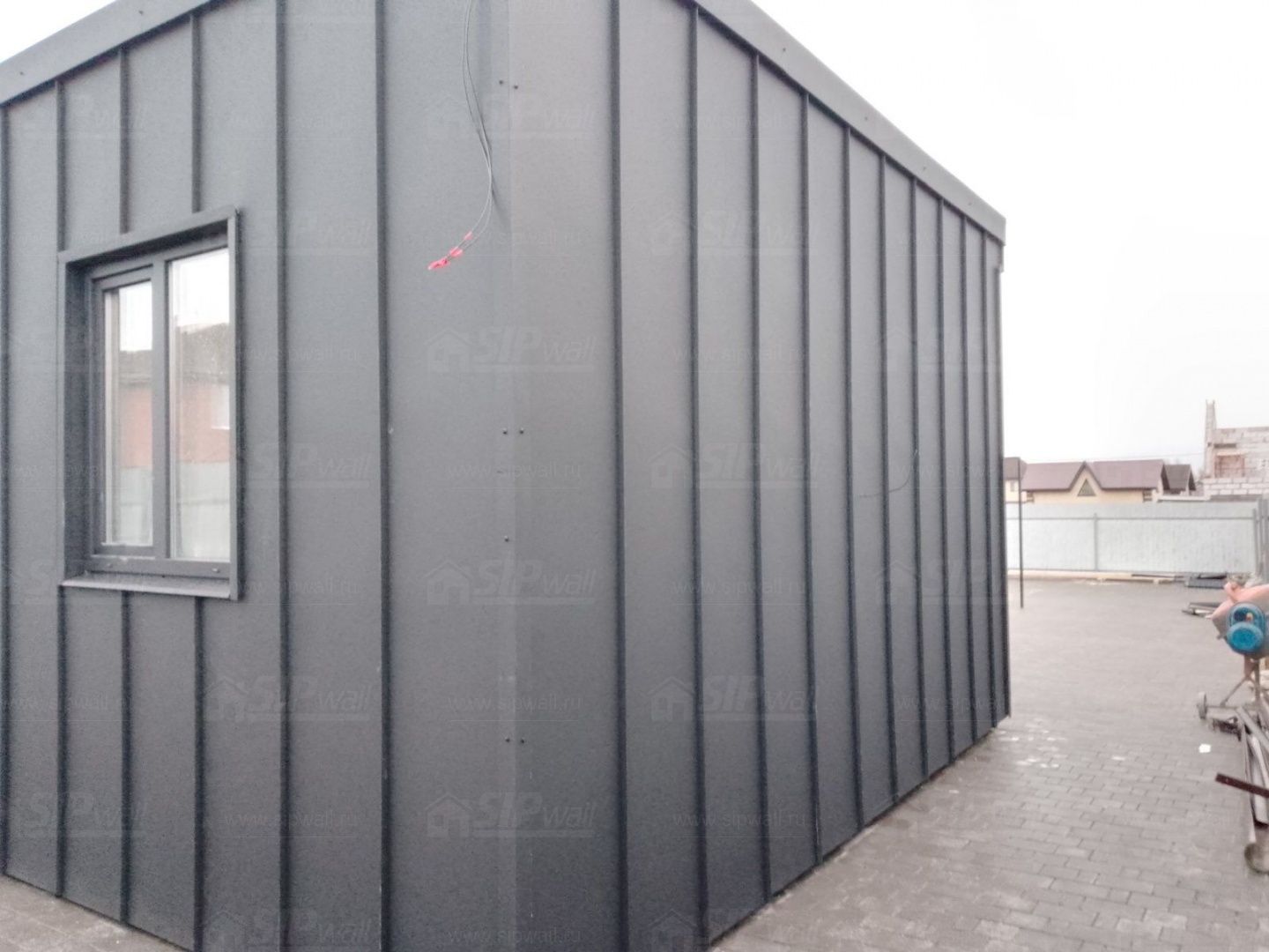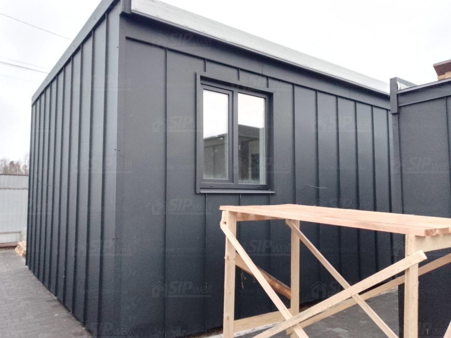 Все СИП панели SIPwall толщиной 224/174/124 мм (плиты OSB-3 толщиной 12 мм, Россия и фасадный пенополистирол ПСБ-С 25Ф по ТУ 22.21.41.110−004 – 44755395 −2017 толщиной 200/150/100 мм производства завода "PolarPlast", Россия) нарезаны и обрусованы сухим строганным брусом камерной сушки в соответствии с проектной документацией.