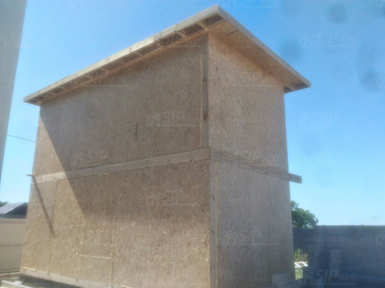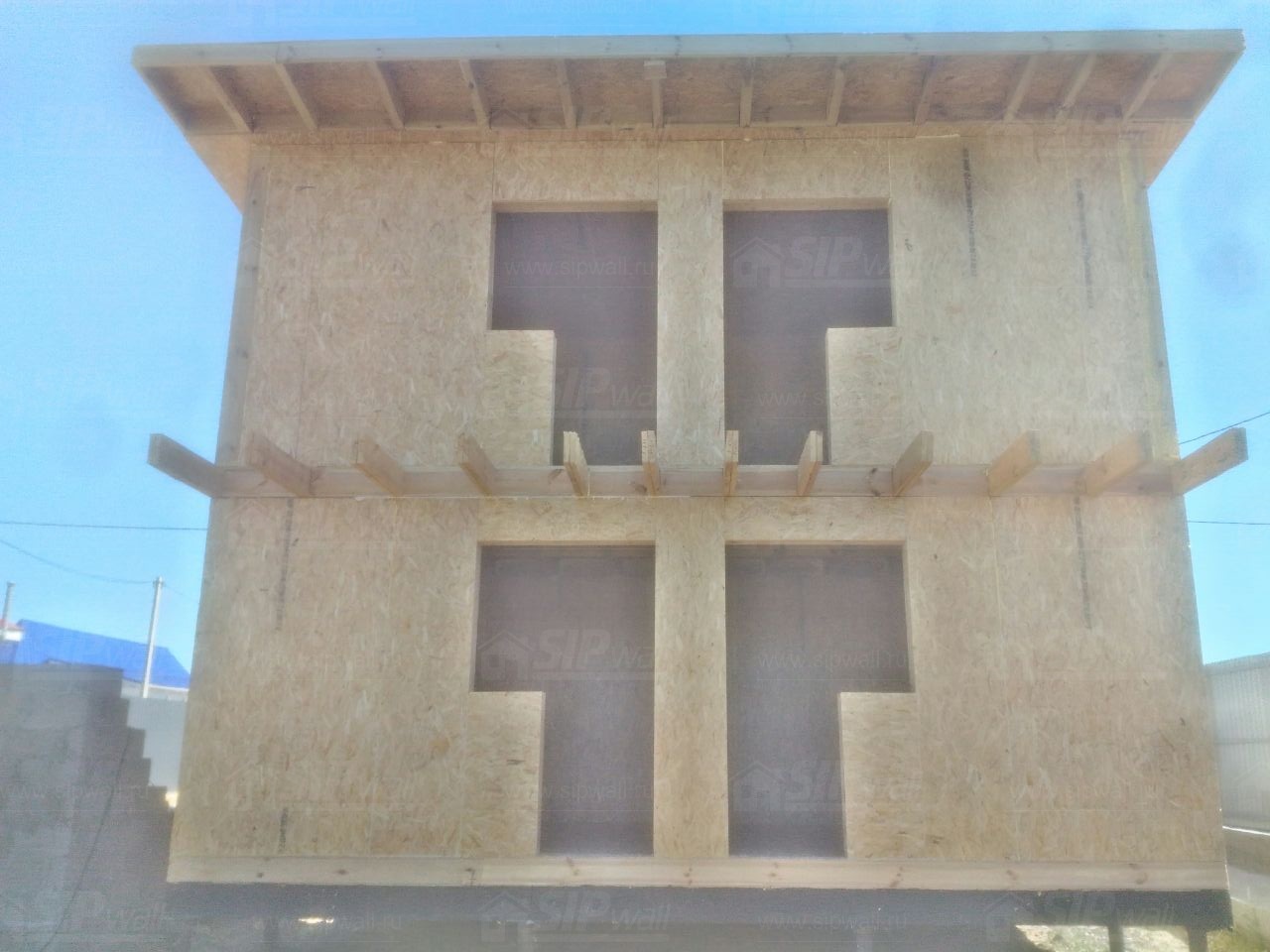Все СИП панели SIPwall толщиной 224/174/124 мм (плиты OSB-3 толщиной 12 мм "Калевала" Россия и фасадный пенополистирол ПСБ-С 25 по ГОСТ 15588-14 толщиной 200/150/100 мм производства завода "PolarPlast", Россия) нарезаны и обрусованы сухим строганным брусом камерной сушки в соответствии с проектной документацией.