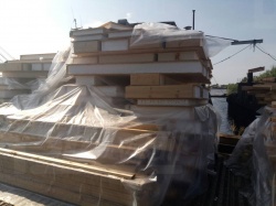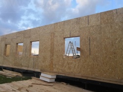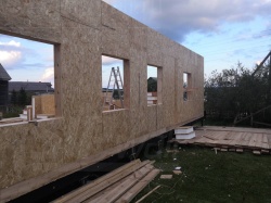 Все СИП панели SIPwall толщиной 224/174/124 мм (плиты OSB-3 толщиной 12 мм "Калевала" Россия и фасадный пенополистирол ПСБ-С 25 по ГОСТ 15588-14 толщиной 200/150/100 мм производства завода "PolarPlast", Россия) нарезаны и обрусованы сухим строганным брусом в соответствии с проектной документацией.