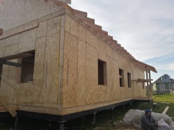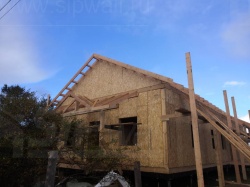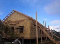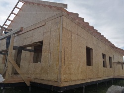 Комплектация домокомплекта: нулевое перекрытие - выполнены из СИП панелей 224У мм, несущие стены дома выполнены из СИП панелей 224 мм., внутренние несущие стены выполнены из СИП панелей 174У мм и внутренние не несущие перегородки выполнены из СИП панелей 124У мм. Перекрытие чердачное - выполнено из СИП панелей 224У мм. Кровля - стропильная система, производства компании СИПВОЛЛ.