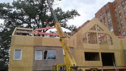 Домокомплект - изготовлен по проекту из СИП панелей произведенный по технологии SIPwall (ЭКОПАН) на собственном заводе расположенном в г. Шуя, Ивановской области. При изготовлении домокомплекта панельно каркасного дома используется только сухой строганный брус камерной сушки, обработанный огнебиозащитным составом.